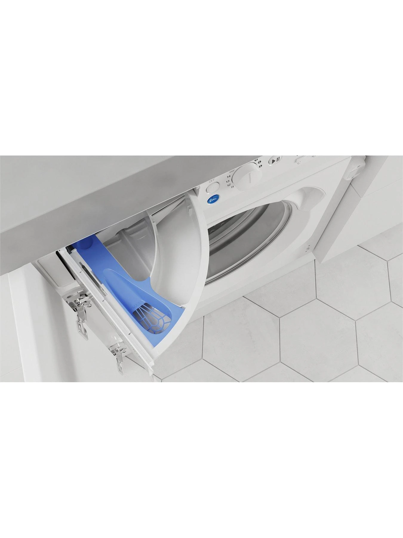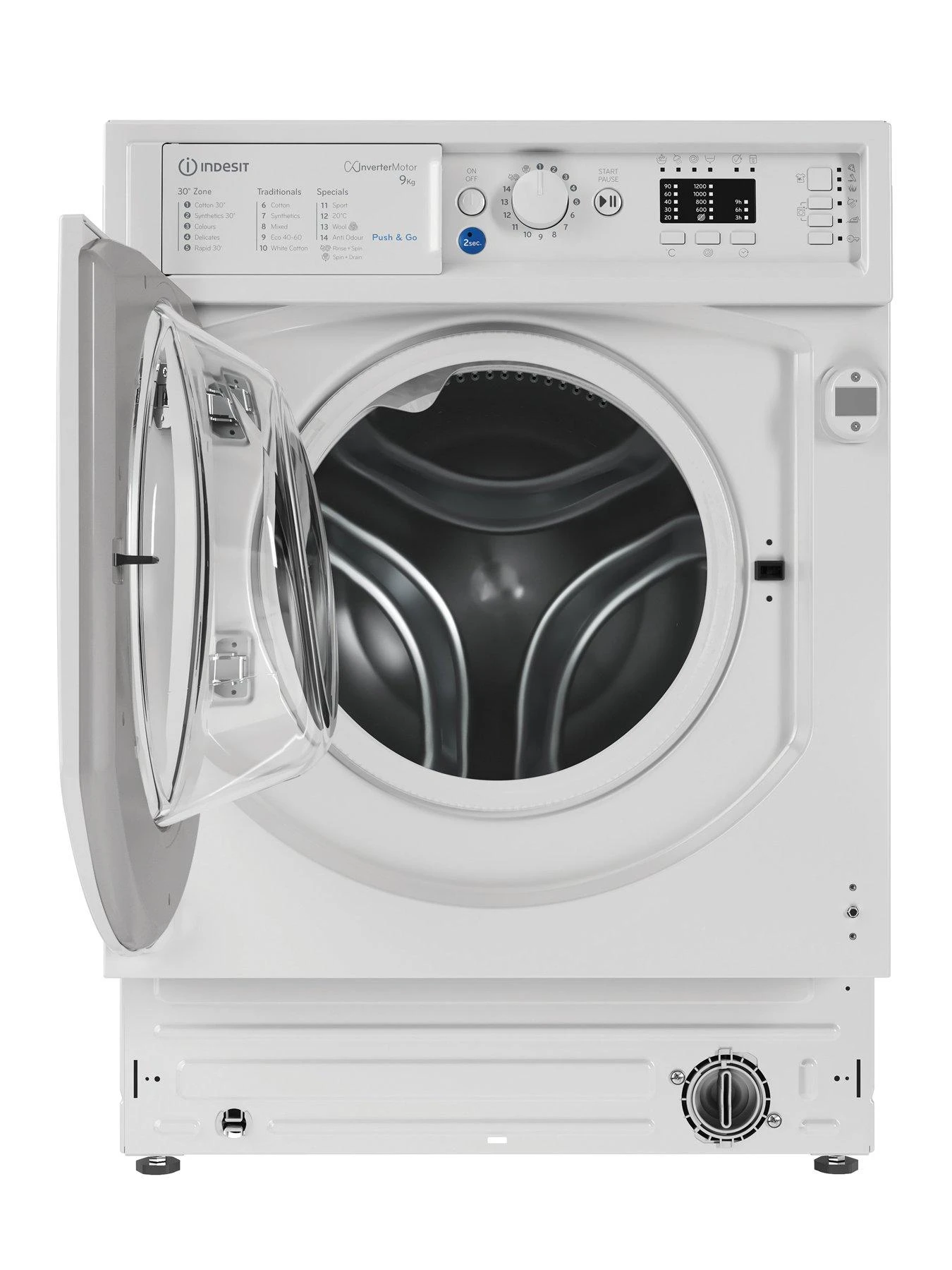 Push&Go – With Indesit’s Push&Go technology, simply press and hold the blue button for two seconds, and the machine will automatically start a daily, 30°C cycle – so easy the whole family can do their part and share the chores.