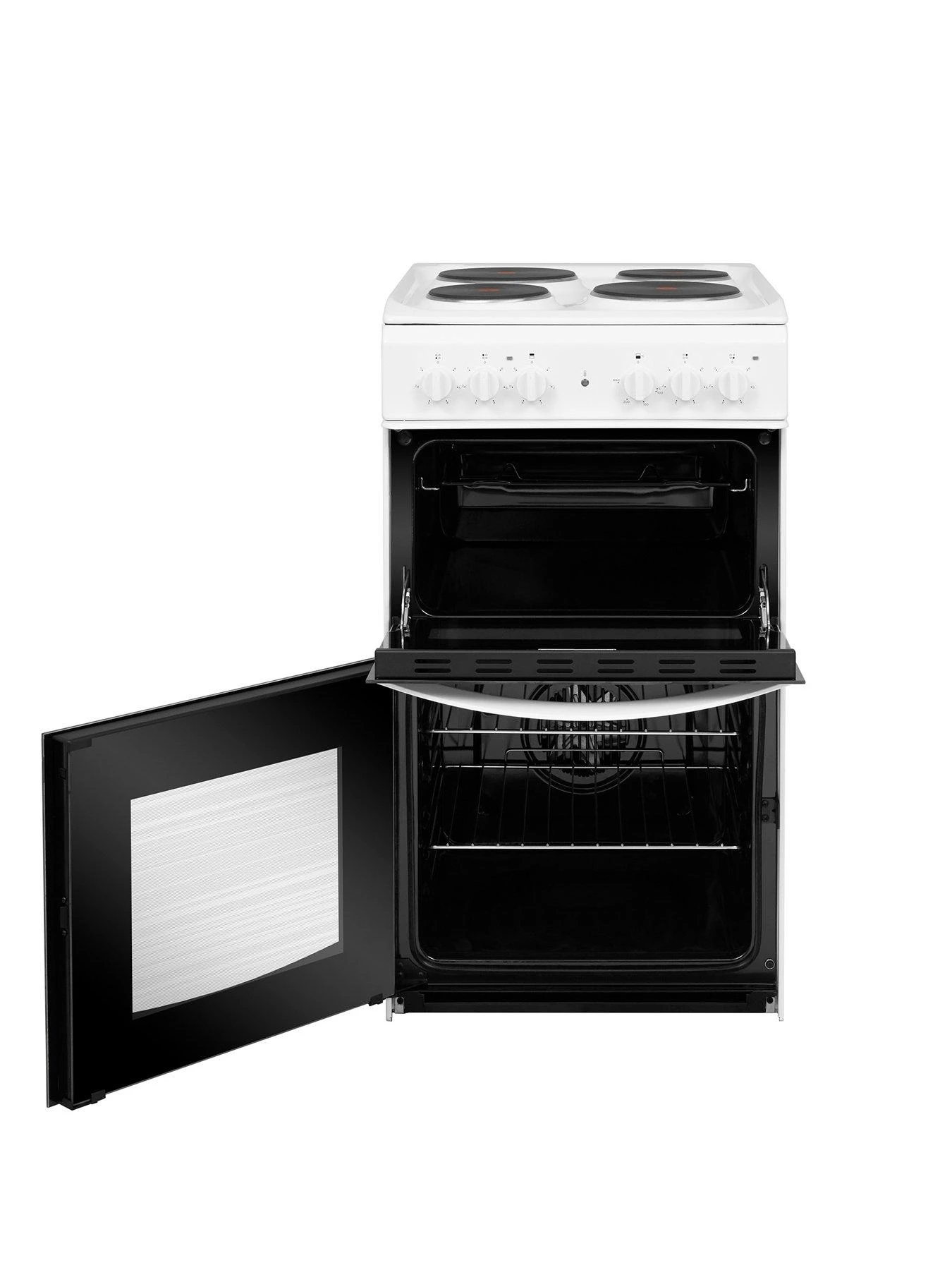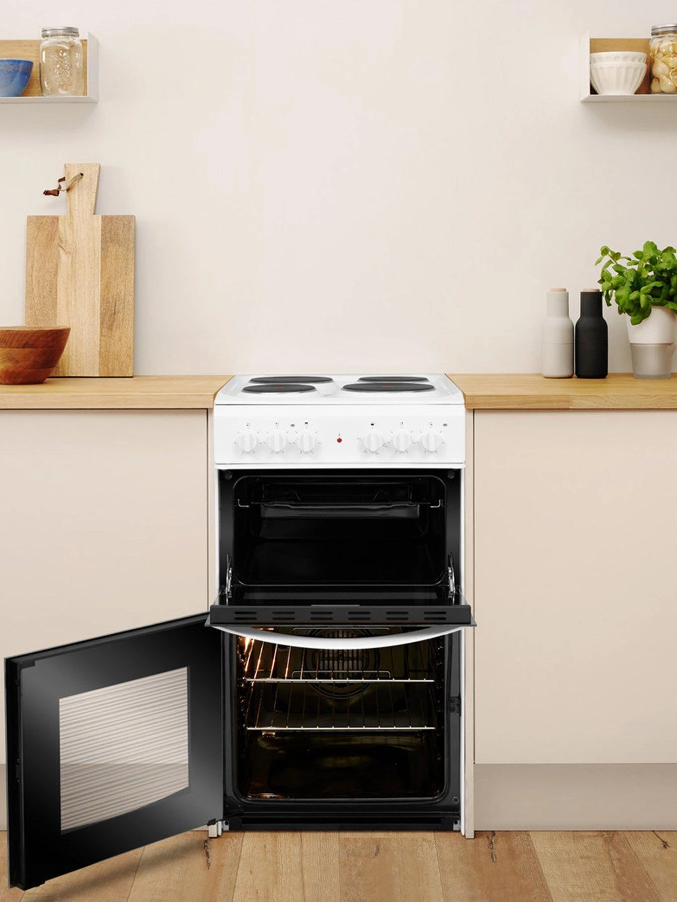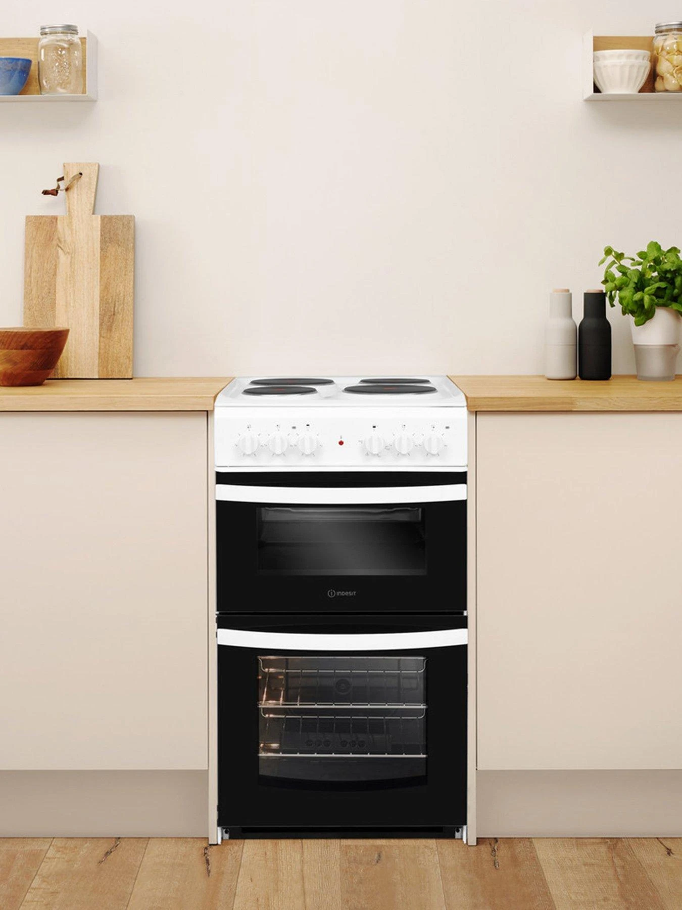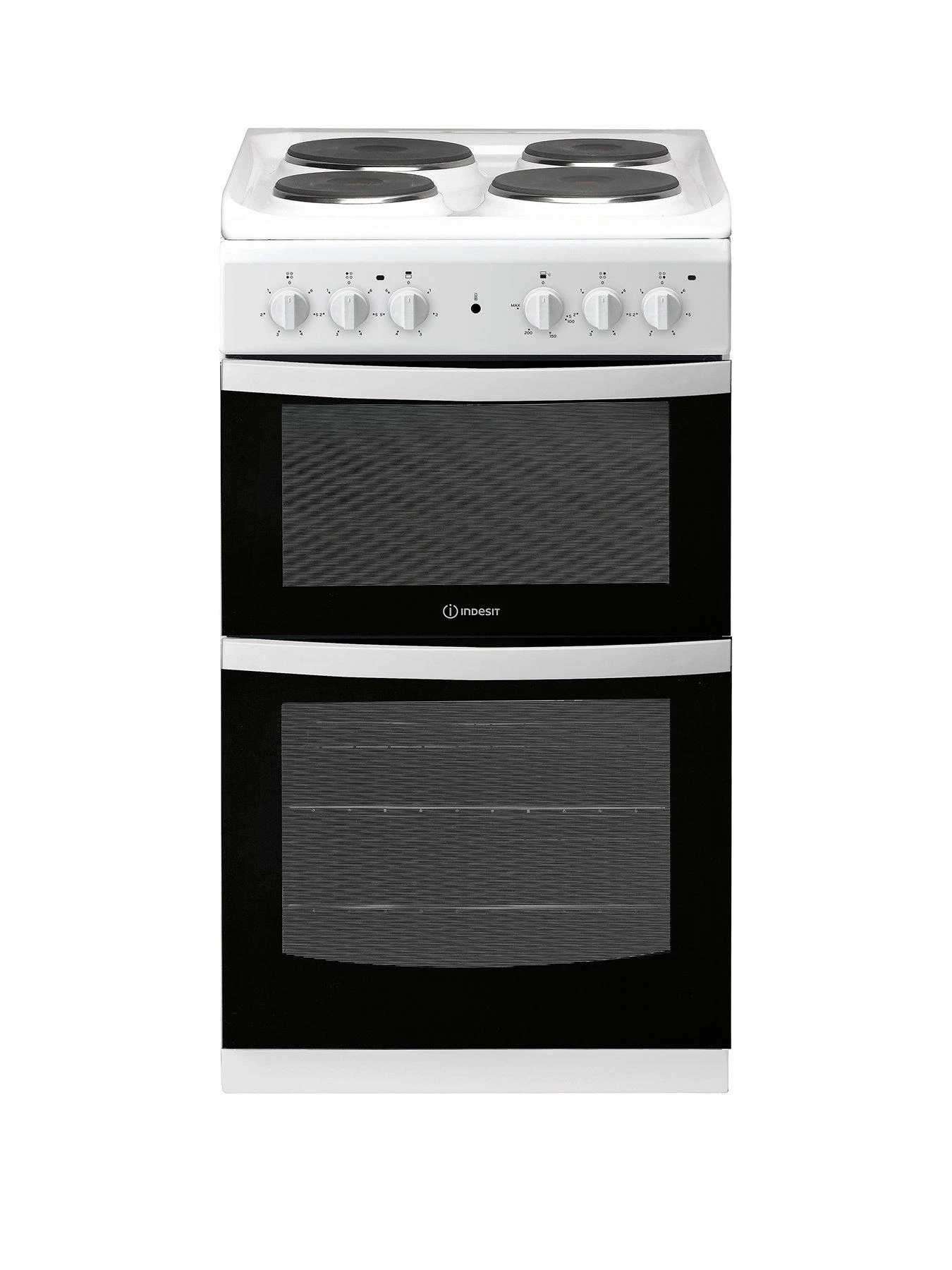 Indesit ID5E92KMW 50cm Wide Electric Solid Plate, Twin Cavity Single Oven Electric Cooker – White