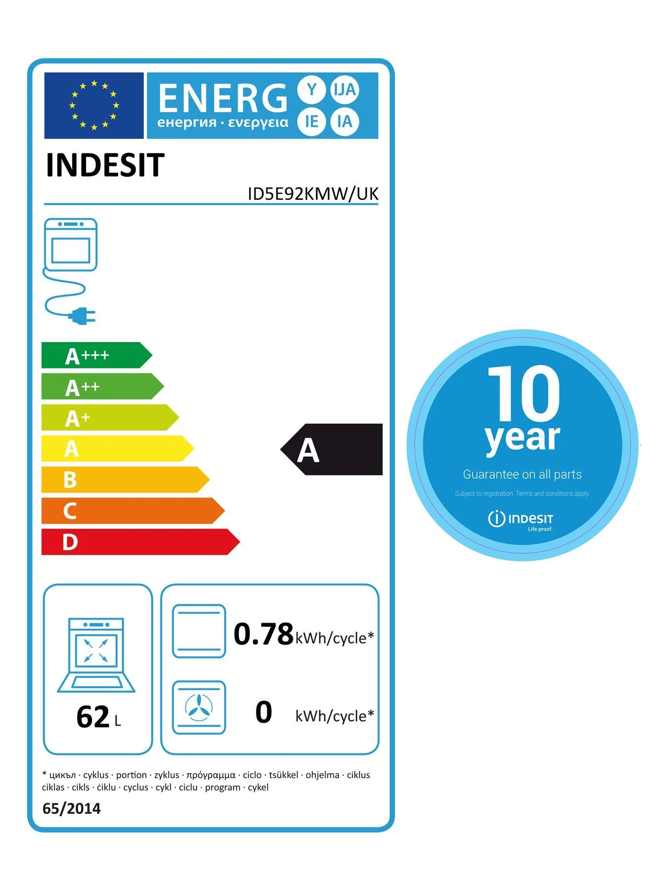 The top cavity houses a variable grill that makes multi-tasking a breeze. This Indesit electric cooker is rated A for energy efficiency, so it’s kind on your electricity bills.