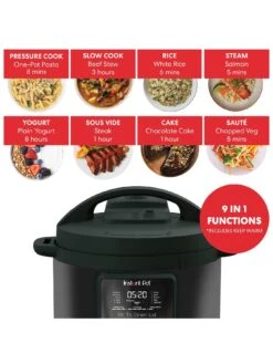 9-In-1 Functionality: pressure cook, slow cook, rice, steam, sauté, yogurt, sous vide, cake and keep warm.