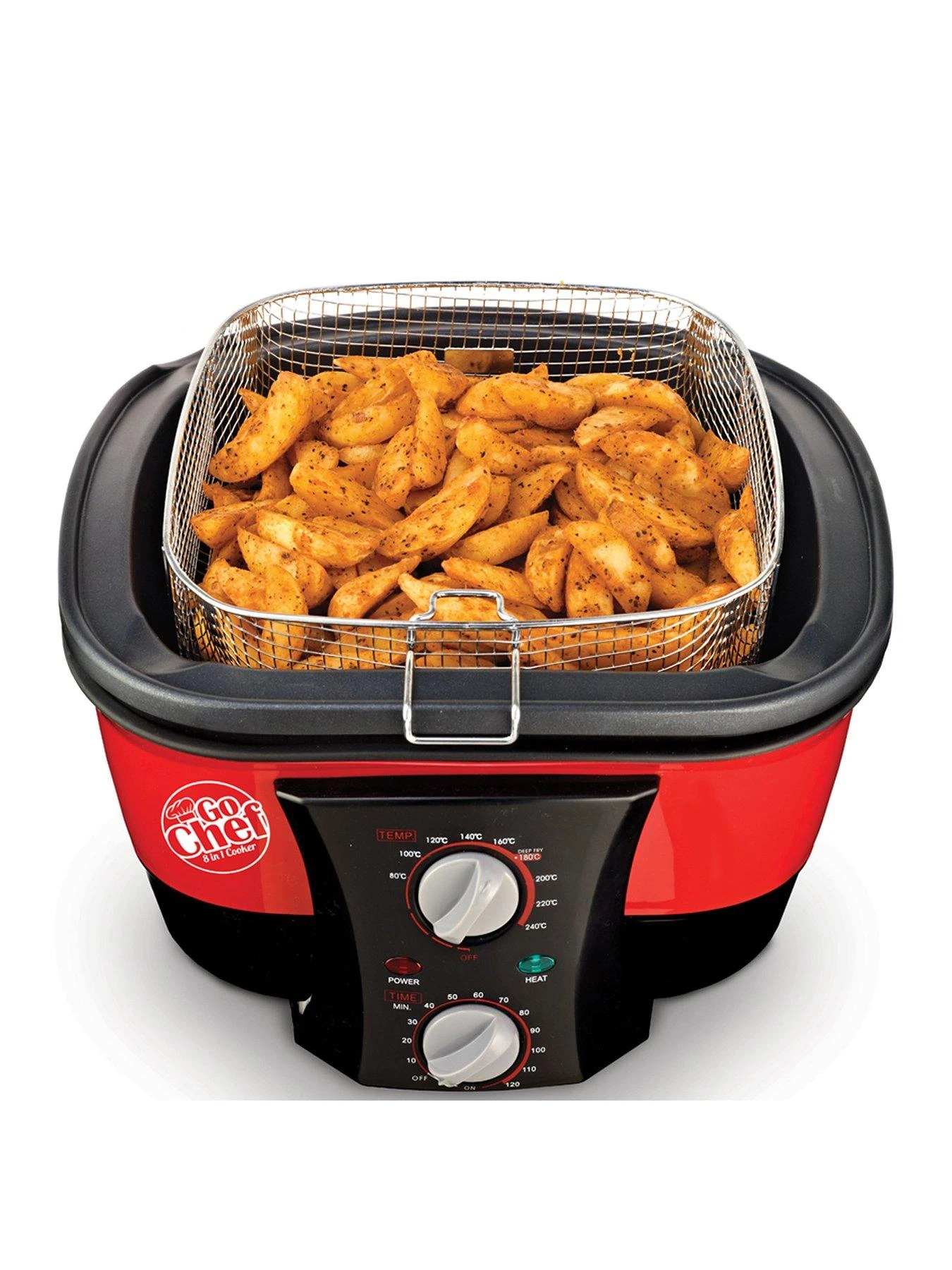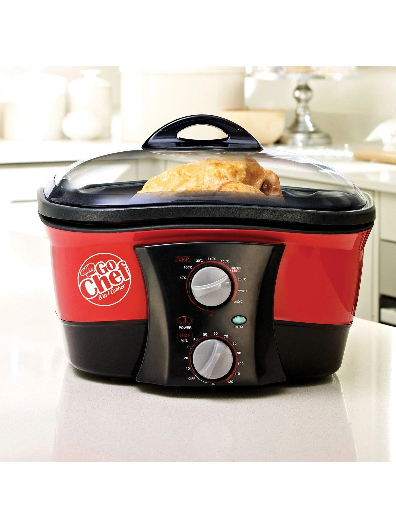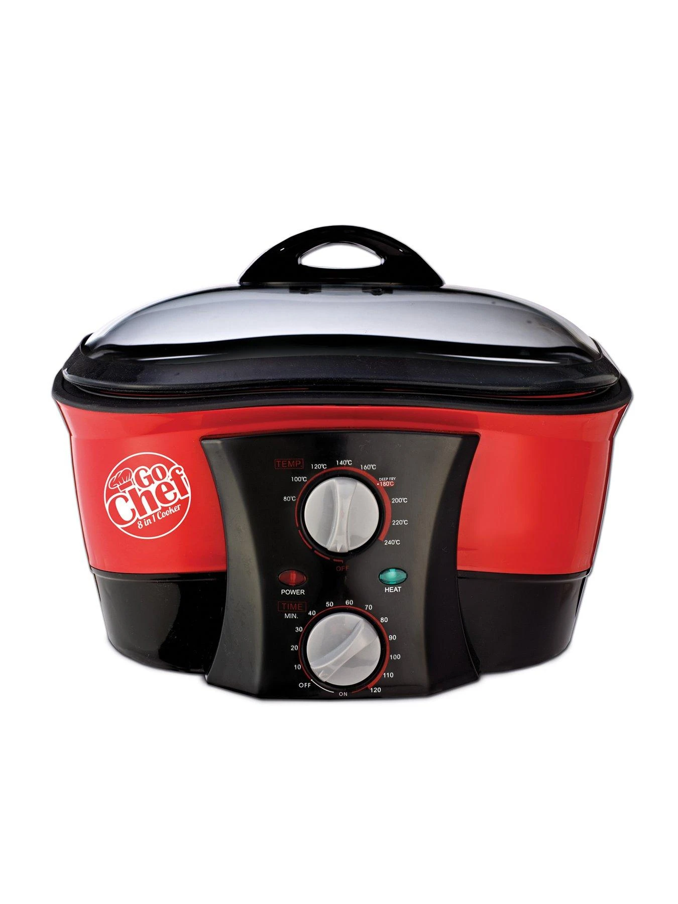Go Chef 8-in-1 multi-cooker lets you roast, bake, fondue, slow-cook, poach, steam, fry, and boil in one, easy-to-use worktop cooker that can cook a whole meal for an entire family, in minutes, with just one non-stick 5litre ceramic pot. Just set the temperature and time and that’s it! Go Chef heats up in around four minutes, and costs less to run than a standard fan oven. Plus, if you set Go Chef at a low heat you can slow-cook casseroles and stews to enjoy at the end of the day. You can even cook a delicious roast chicken for the whole family. Go chef will even let you cook from frozen. PLUS, it lets you fry in a healthier way because Go Chef has a special non-stick ceramic coating that’s PTFE and PFOA free, meaning you can fry and saute with less oil. And, even clean-up is as easy as a quick wipe and you’re done!