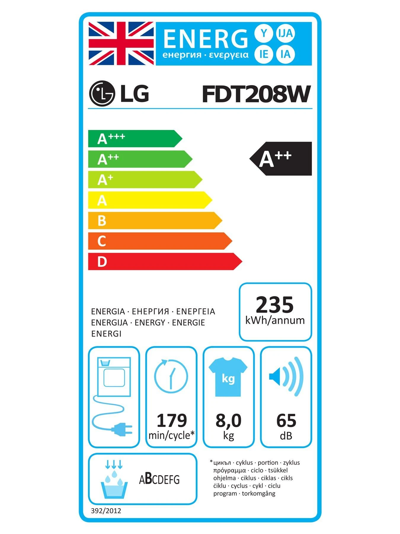 LG LG FDT208W 8kg Heat Pump Tumble Dryer – White – A++ Rated
