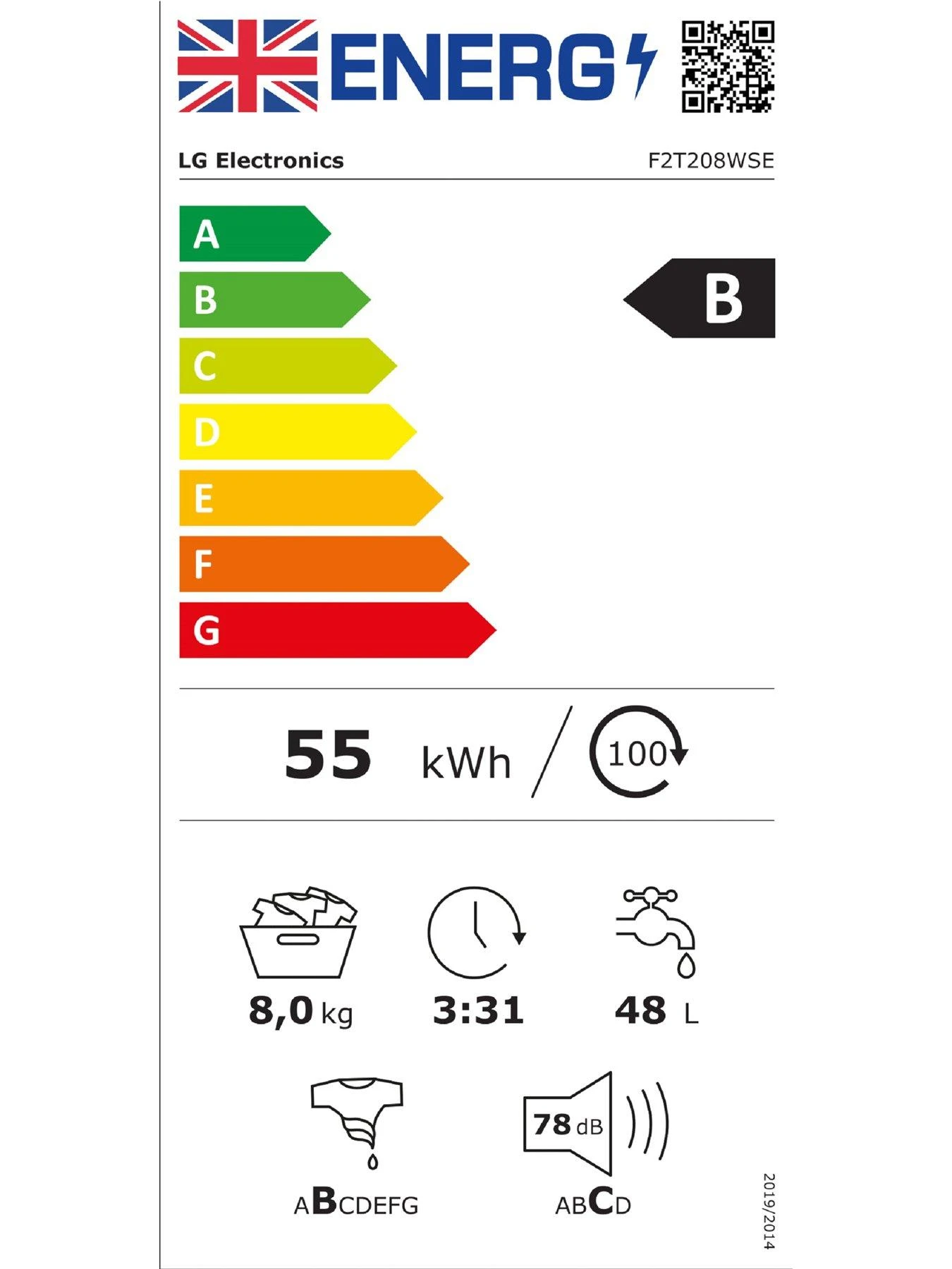LG LG Steam F2T208WSE 8kg Washing Machine – White – B Rated