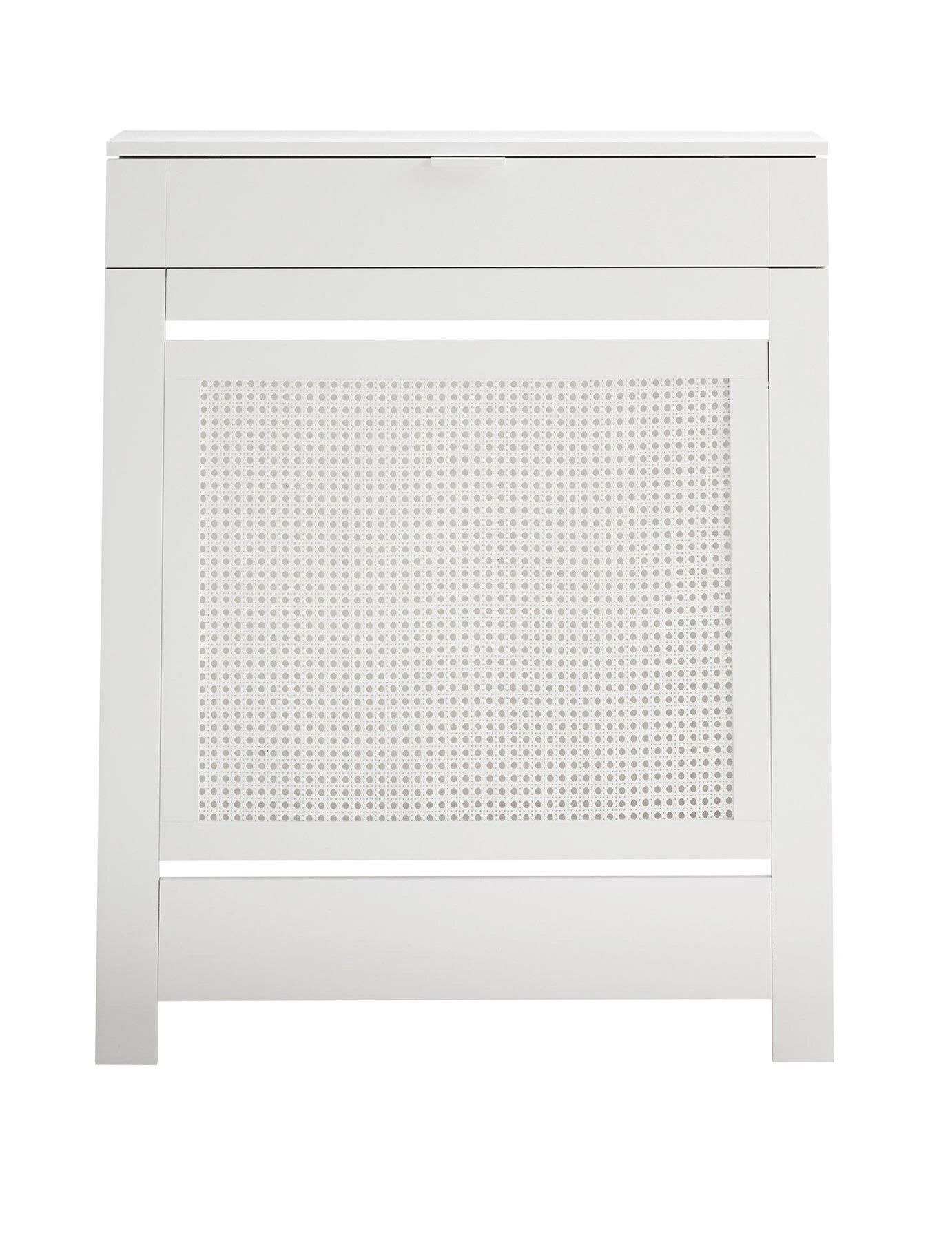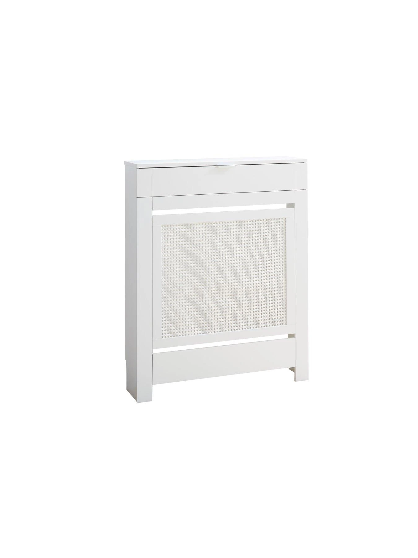 Transform your rooms style at home while instantly adding a contemporary feel with the Mini Rattan Style Radiator Cover with Drawer. Featuring a natural rattan panel to the front, this heater cover includes one shallow drawer making for handy storage. The cover is made with a hollow design to evenly distribute heat around rooms, whilst hiding radiators out of sight and protecting your kids or pets from accidental burns. Available in Small, Medium, and Large in White or Black.