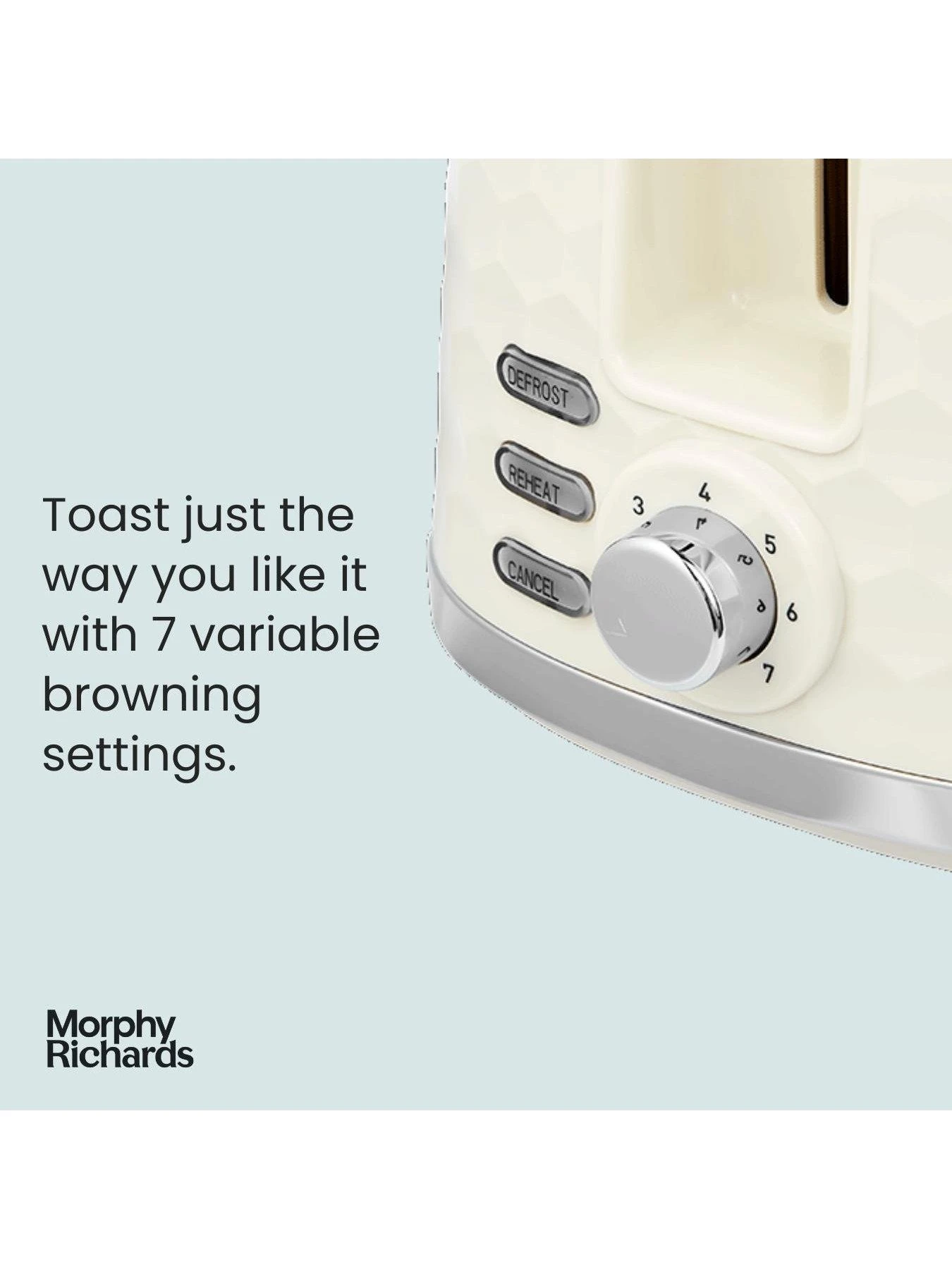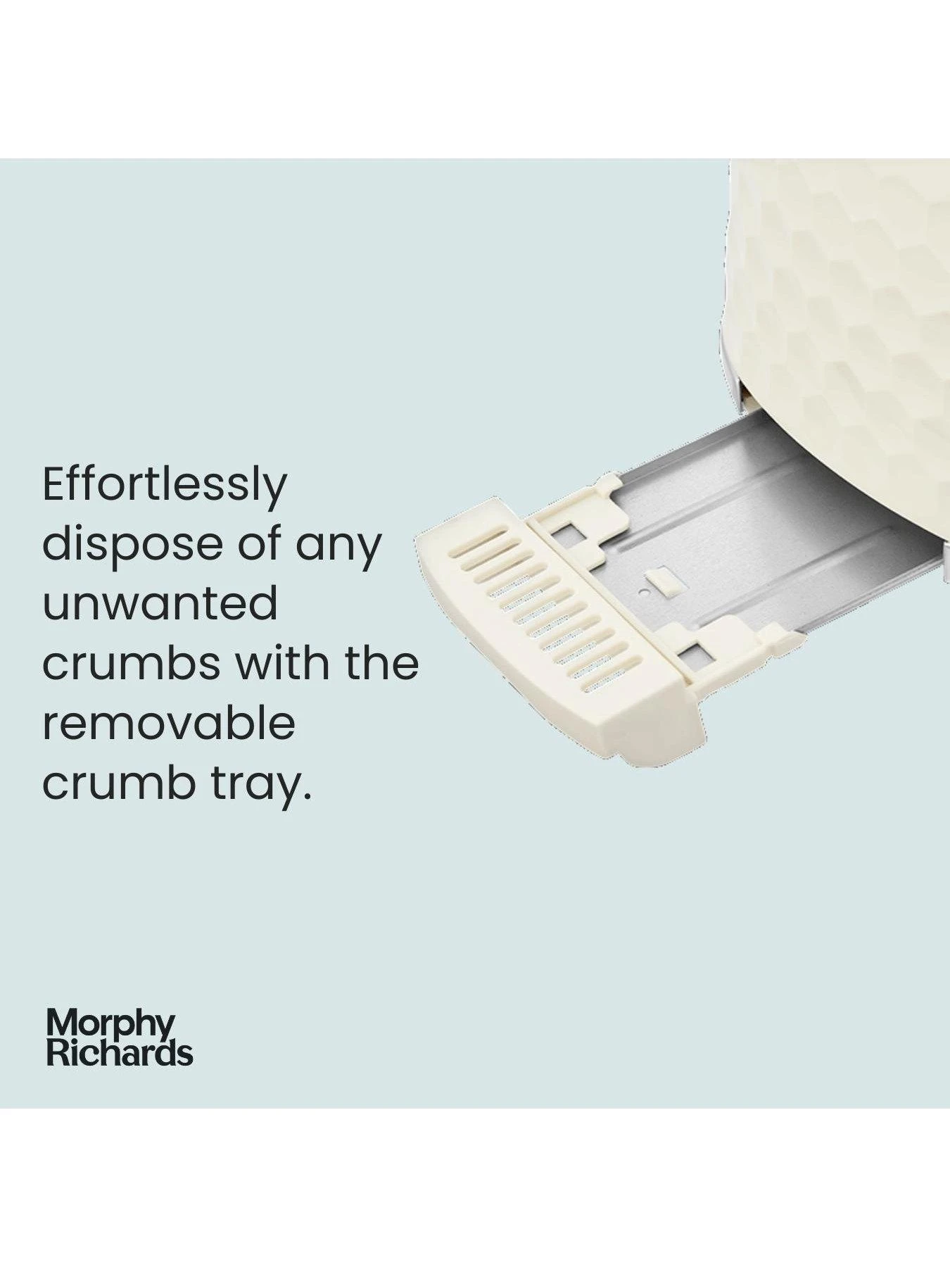 The stylish Morphy Richards Hive 220032 2-Slice Toaster in Cream is ideal for breakfast and snacks.