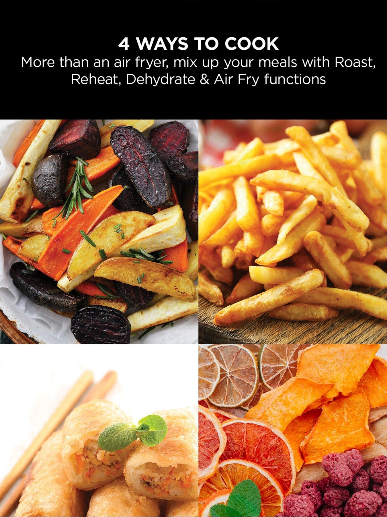 Air Fry, Roast, Reheat and Dehydrate – so this versatile Ninja Air Fryer can reheat leftover pizza to crispy perfection, and even gently dehydrate ingredients to enjoy homemade dried fruits, vegetable crisps and beef jerky!