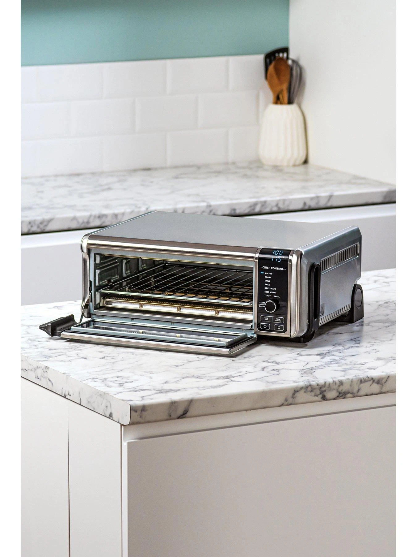 Designed to flip away for simple storage, the unique design means that the NINJA Foodi oven can be stored on its side to take up 50% less space. The removable crumb tray and accessible back panel make it easy to clean, too.