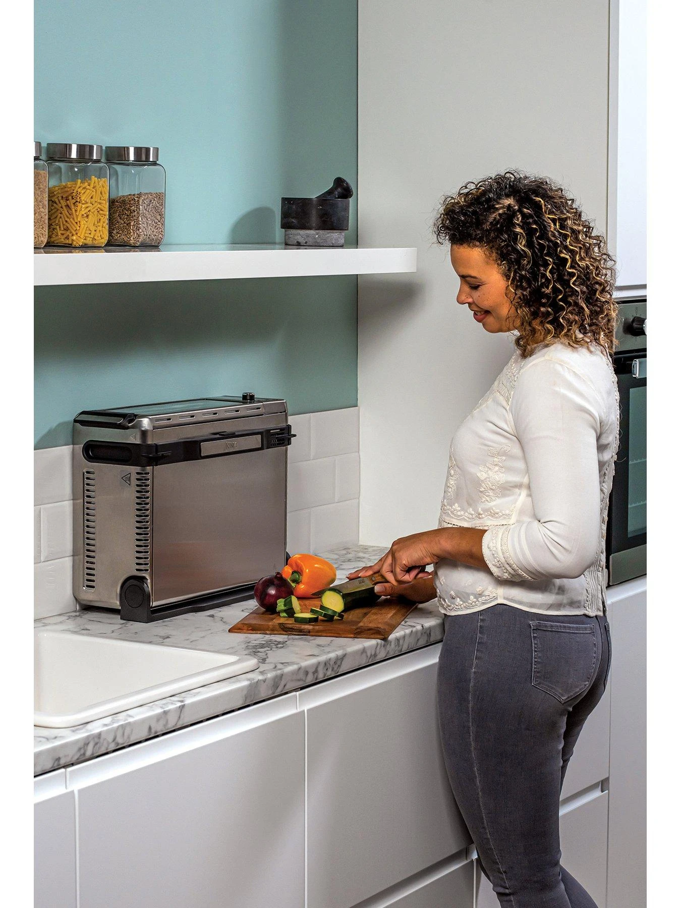 - Flip away for compact storage – reclaim your counterspace and store on its side to take up 50% less space