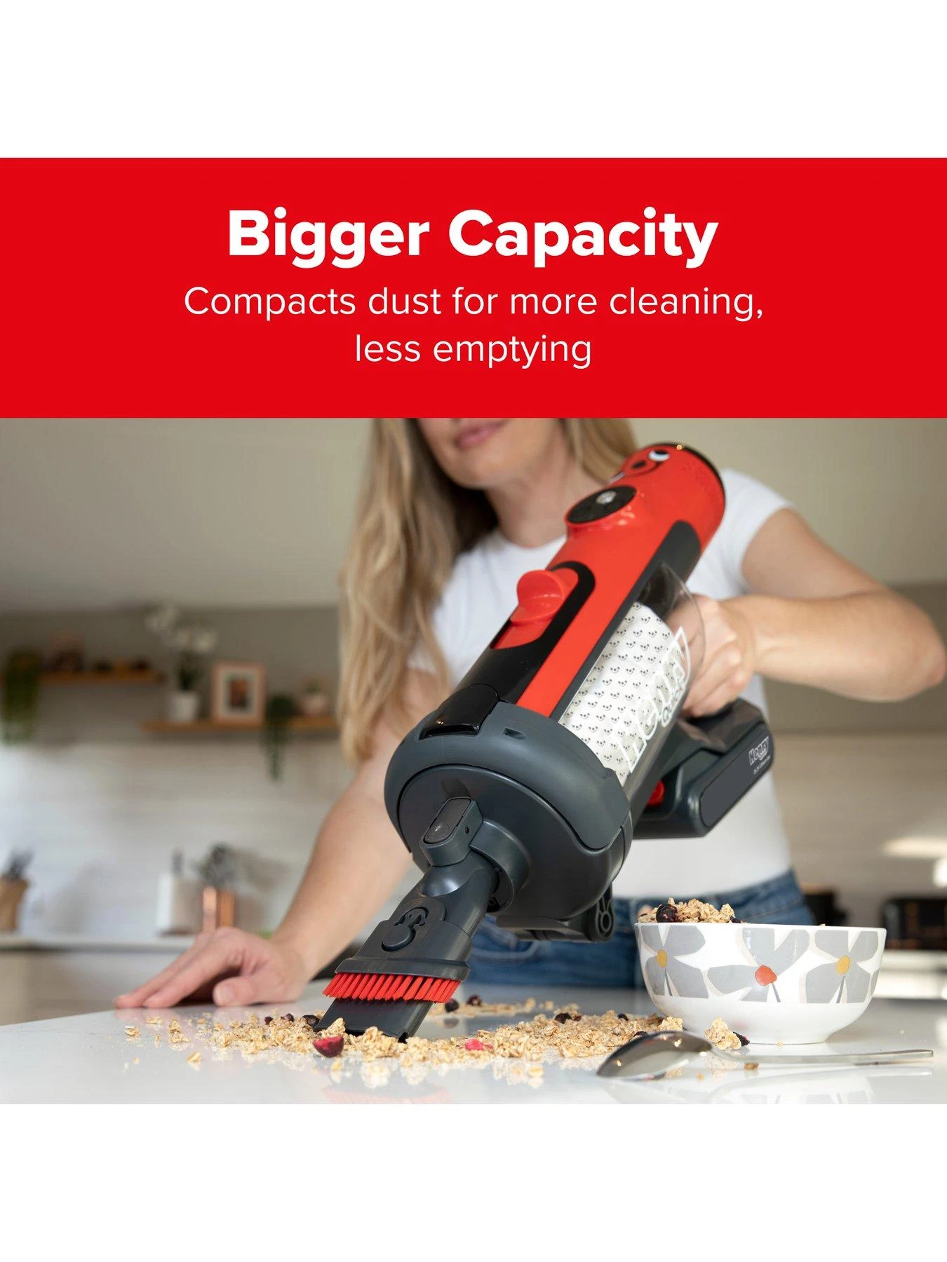 Love cordless cleaning, but fed up with dirty emptying? Meet Henry Quick! Henry Quick compacts dust inside a clever pod system, giving a bigger capacity than most leading vacuums and one-click, dust-free emptying. Up to 60 minutes of powerful cleaning, just as you would expect from a Henry. Stores neatly away on wall dock with accessory storage.