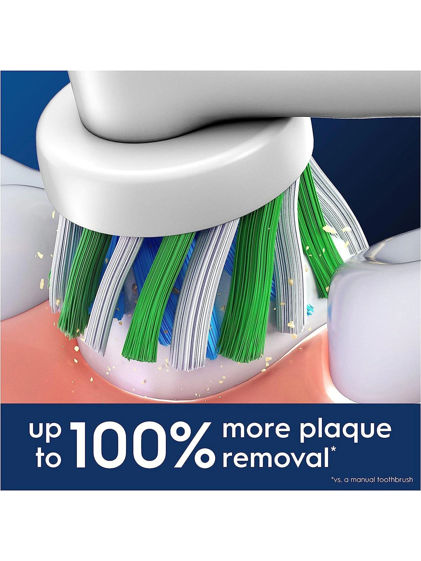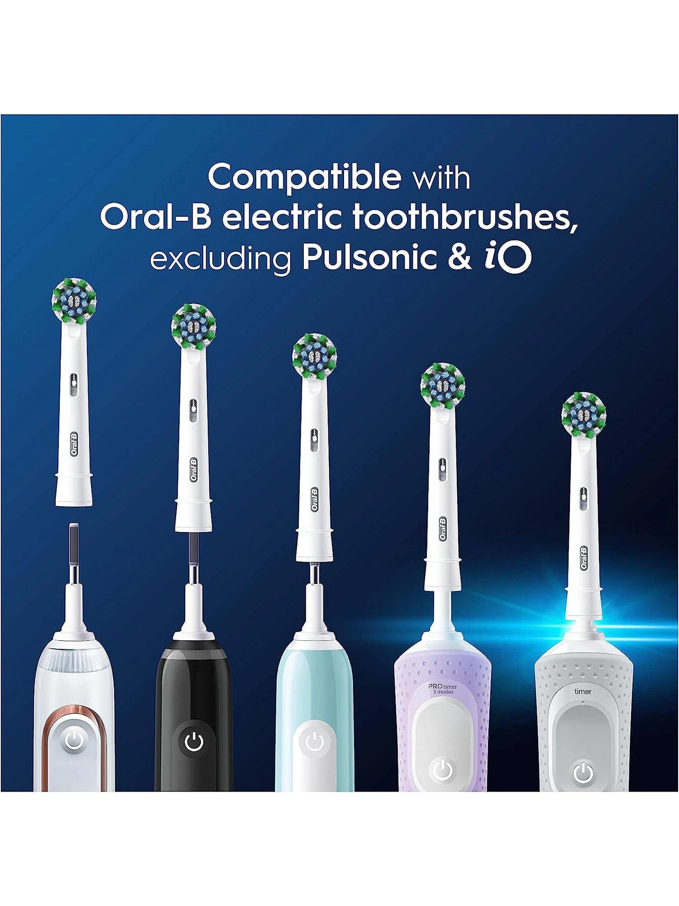 The Oral-B Pro Cross Action toothbrush head features more than 2200 perfectly angled bristles to remove up to 100% more bacterial plaque for cleaner teeth & healthier gums vs. a manual toothbrush. Oral-B genuine brush heads are designed with new X-shape bristles that clean in areas that round ones cannot reach. Its brush head usage indicator turns bristles from green to yellow showing you when to change for 100% cleaning efficacy. Guaranteed fit with Oral-B electric rechargeable toothbrushes except Pulsonic & iO toothbrushes.