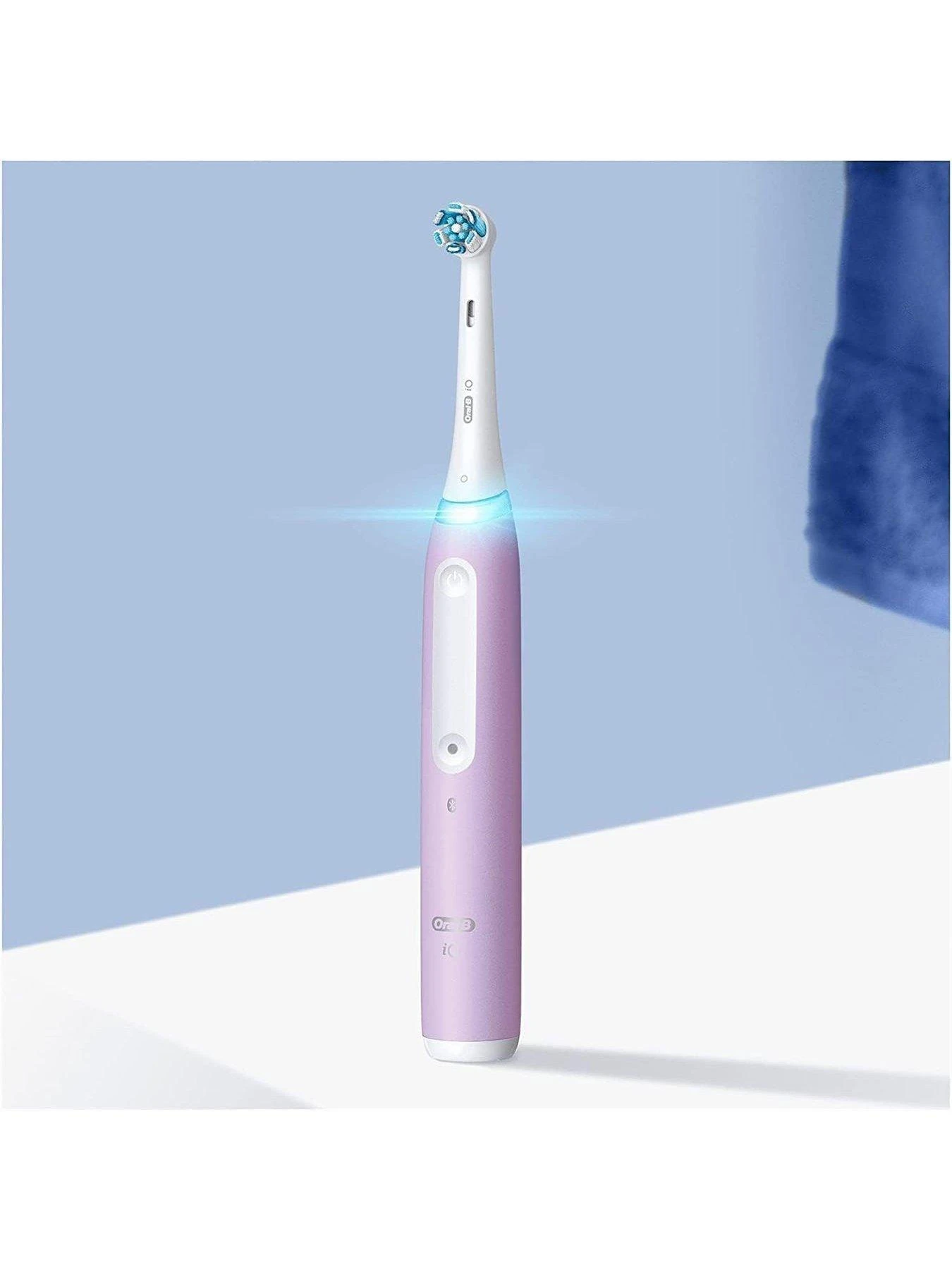 The iO 4 electric toothbrush features Oral-B’s best technology, combining a dentist-inspired round brush head with micro-vibrating bristles for a professional purifying clean feel at home. The Smart Pressure Sensor helps prevent you from brushing either too hard or too softly to better protect your gums. Gum Guard alerts you to time spent brushing with too much pressure. Replace your Oral-B iO toothbrush head every 3 months for the best results.