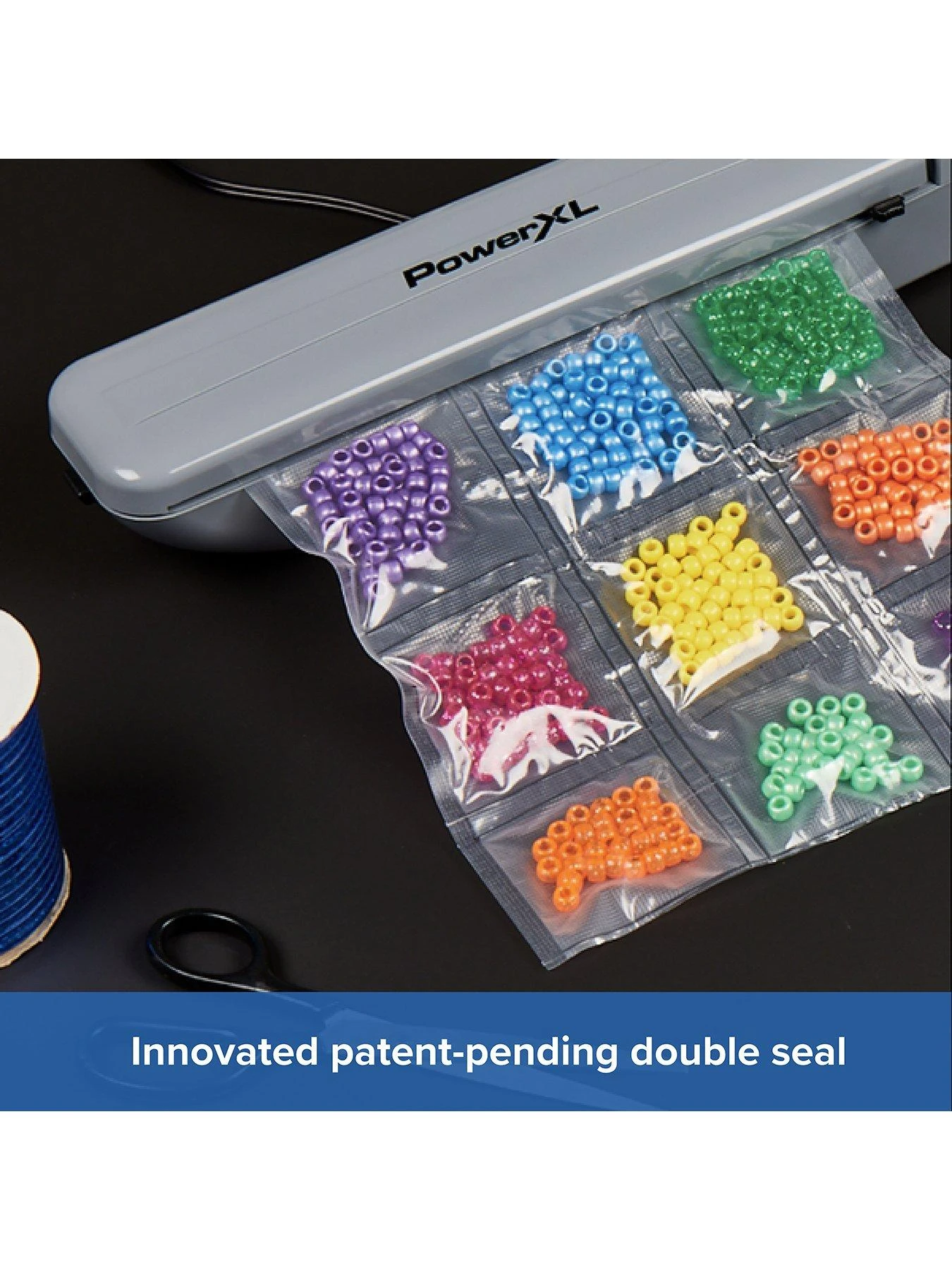 - 6-in-1 Vacuum sealing and storing system: vacuum, vacuum & seal, cut to size and seal individual portions thanks to the patent-pending dual seal.