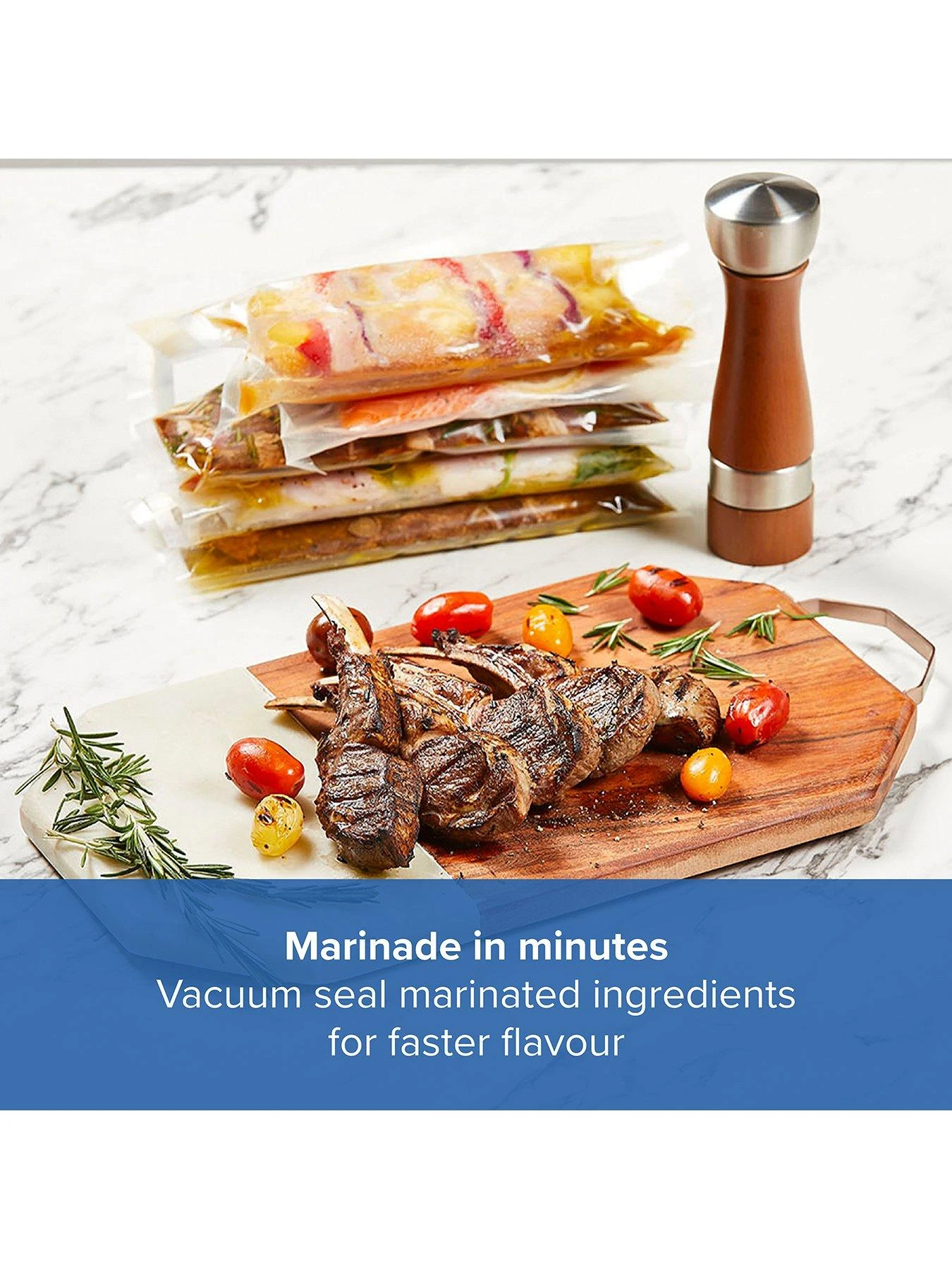 - Seal your food in the included rolls of vacuum bags to lock in flavour and freshness.