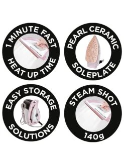 - Pearl infused ceramic soleplate for a 50% smoother glide and 2x more durability*