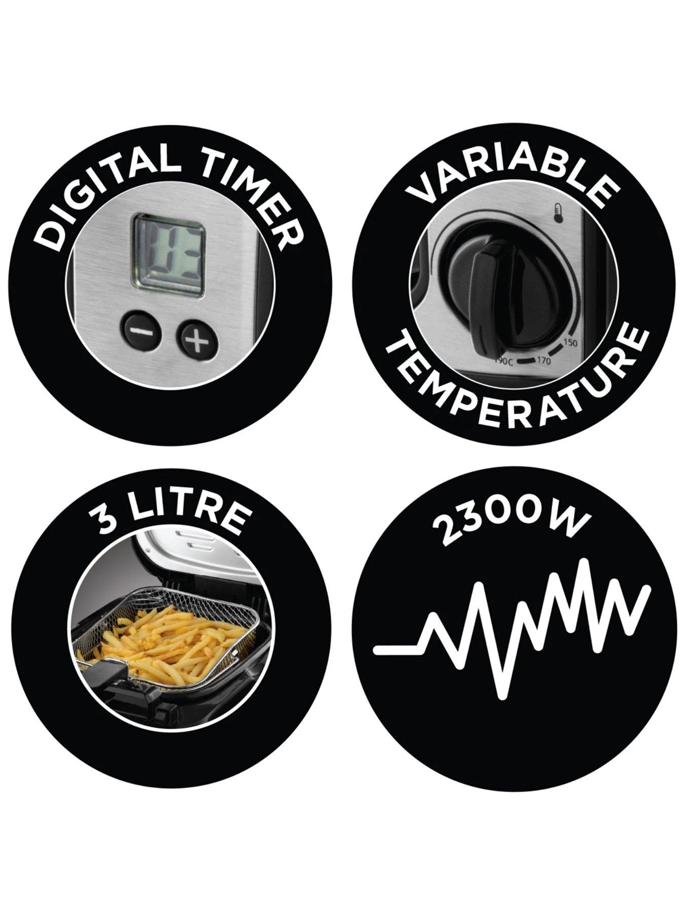 The Russell Hobbs 24580 Digital Deep Fryer includes a digital timer that you can set to ensure everything is cooked to perfection. Variable temperature control also allows you to cook at the optimum temperature according to the type of food and, of course, personal taste.