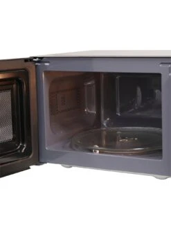 This 20-litre interior and 800-watt motor provide quick, convenient cooking, with 5 power levels, including a defrost setting, and a 35-minute timer. The large dial is easy to use and a removable glass turn table ensures easy cleaning. A stylish pull door handle and glass door will impress on any kitchen top.