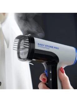 This lightweight and compact steamer folds neatly in half and the cord wraps securely around the back for easy storage in smaller spaces.