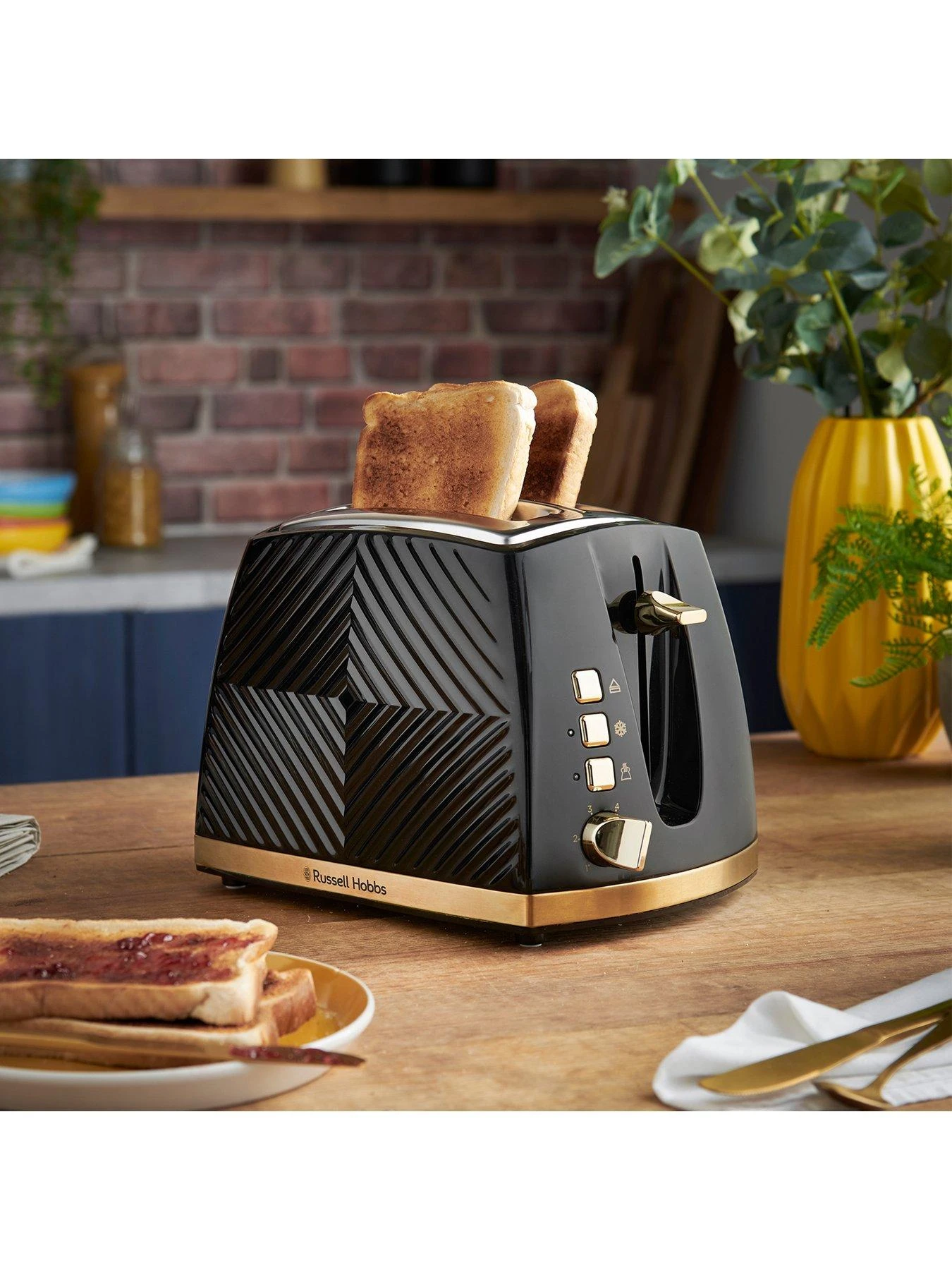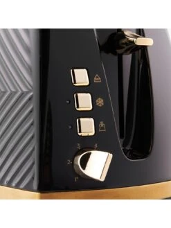 Textures never go out of style and the Russell Hobbs Black Groove Kettle and Toaster Bundle’s chic, tactile finish and gold accents will make a fashionable statement on your kitchen countertop.