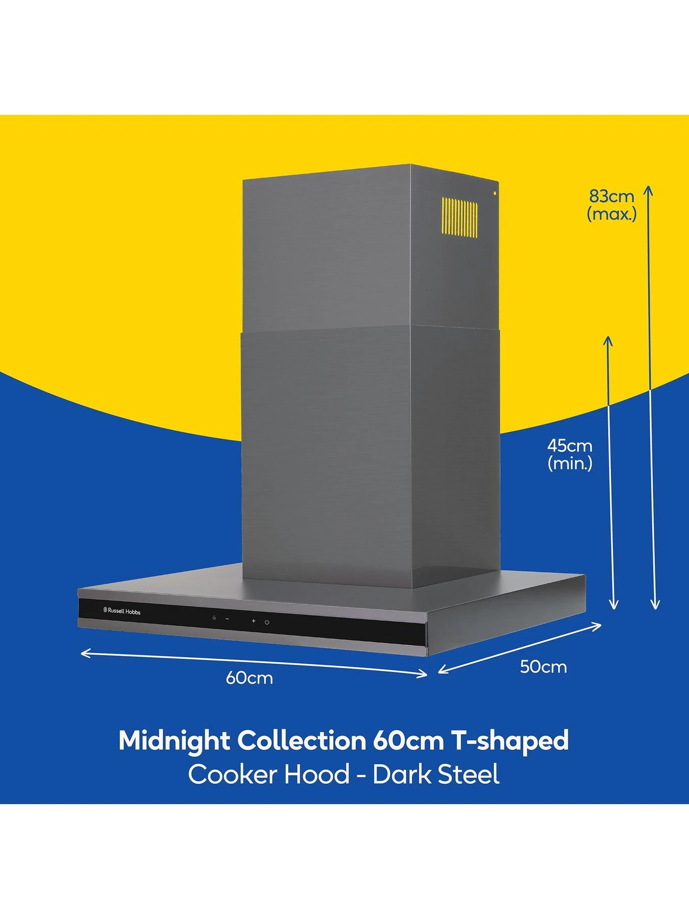 RUSSELL HOBBS MIDNIGHT RHGCH603DS 60CM T-SHAPED CHIMNEY COOKER HOOD Dark Steel