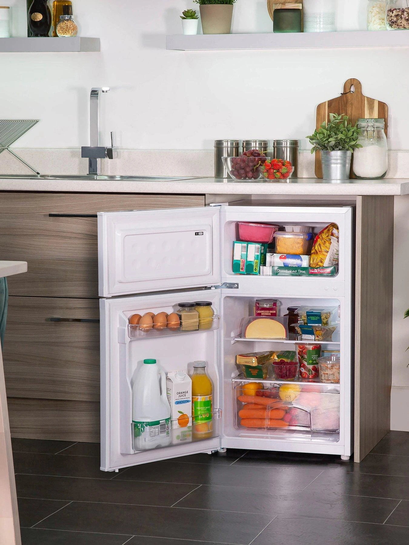 This model features an adjustable thermostat, so you can precisely set the temperature to suit the contents of your fridge. There’s also a reversible door for versatility, so you can place your fridge wherever you want. Plus, there are adjustable feet to ensure your fridge is stable on uneven surfaces and a snug fit.