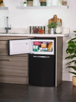 This model features an adjustable thermostat, so you can precisely set the temperature to suit the contents of your fridge. There’s also a reversible door for versatility, so you can place your fridge wherever you want. Plus, there are adjustable feet to ensure your fridge is stable on uneven surfaces and a snug fit.