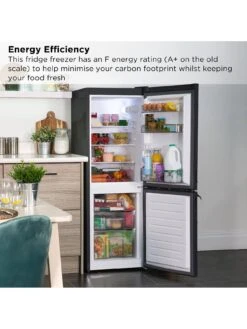 The Russell Hobbs RH50FF145B Low Frost Fridge Freezer keeps your food fresh and tasty.