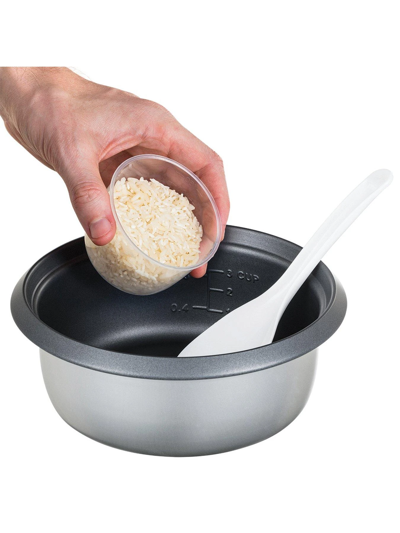With a handy Measuring Cup, you can choose the exact amount of rice you want to cook. And, once it’s ready, there’s a Spoon included for serving. To top it off, there’s also a Steamer Basket that sits perfectly in the cooking pot, so you can cook tender and flavoursome vegetables to accompany your rice.