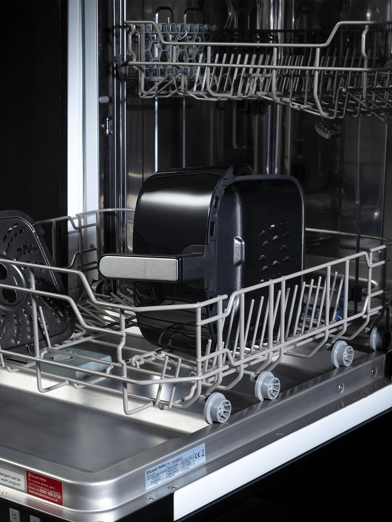 The removable non-stick coated fry basket and crisping plate are dishwasher safe* and can be removed after every use, for ease of cleaning in the sink or dishwasher.
