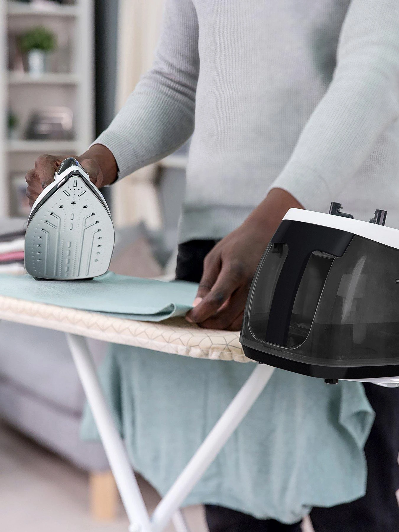 This steam generator iron features a ceramic soleplate that easily glides across all fabrics, making large piles of ironing easier than ever!
