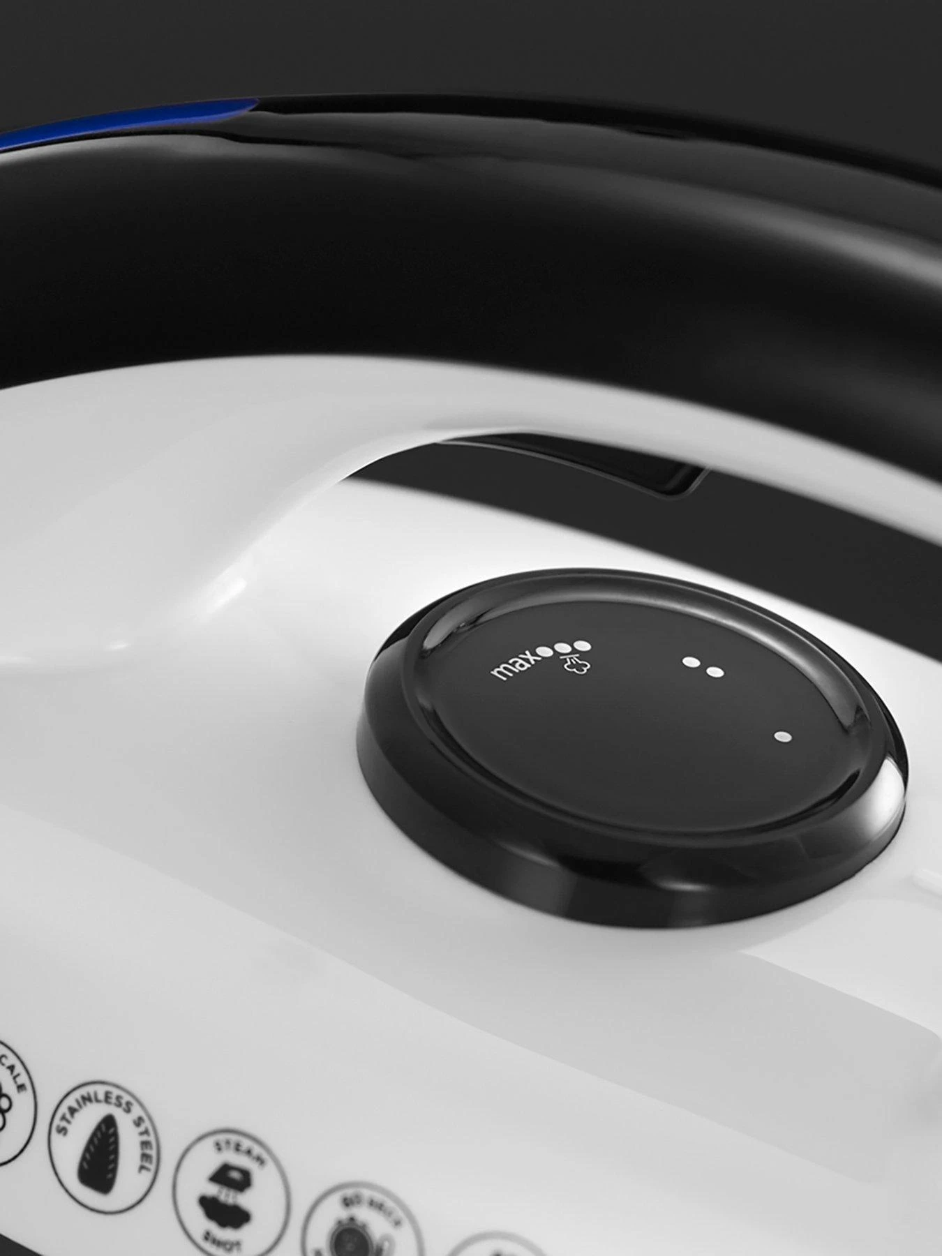 With an extra-large 1.3 litre water tank, you can iron for longer without having to refill. When you do need to add more water, the control panel will light up to alert you, so you can simply detach the tank, fill it up and carry on where you left off, without having to wait for it to cool down first.