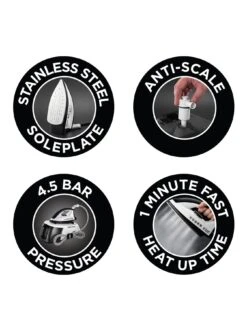 Whether ironing delicate garments or heavy duty fabrics, this 2400W iron can handle it all with ease. A generous 4.5 bar pressure and huge 90g of pressurised steam ensure ultimate steam performance, so you can easily smooth out creases from even the toughest fabrics, helping to reduce your time spent ironing.