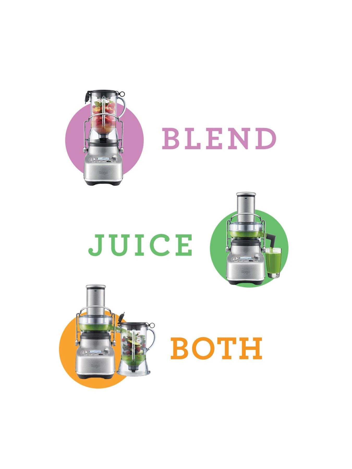 Sage 3X Bluicer Pro works as both juicer and blender for truly delicious results.