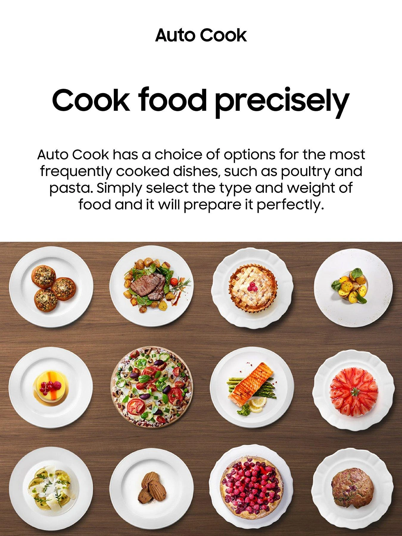- Preparing your food is easy thanks to the Samsung MS23T5018AC BESPOKE Microwave’s automatic cooking functions.