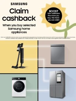 Purchase between 27.09.23 – 23.01.24 from a participating retailer. Your old vacuum must be recycled at their local recycling centre with photo evidence. Claim from Samsung within 30 days of purchase. Maximum 2 Claims per household. To claim, and for full terms and conditions, see