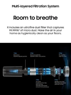 This Multi Layered Filtration system* includes an ultra-fine dust filter that captures 99.999%* of micro dust, like pollen and mould – making the air in your home as hygienically clean.