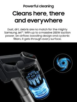 The Samsung Jet 75 Pet VS20T7532T1 Cordless Stick Vacuum Cleaner gives you a powerful, deep down clean every time.