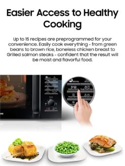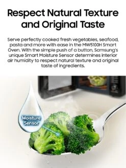 Serve perfectly cooked fresh vegetables, seafood, pasta and more with ease in the MW5100H Smart Oven. With the simple push of a button, Samsung’s unique Smart Moisture Sensor determines interior air humidity to respect natural texture and original taste of ingredients.