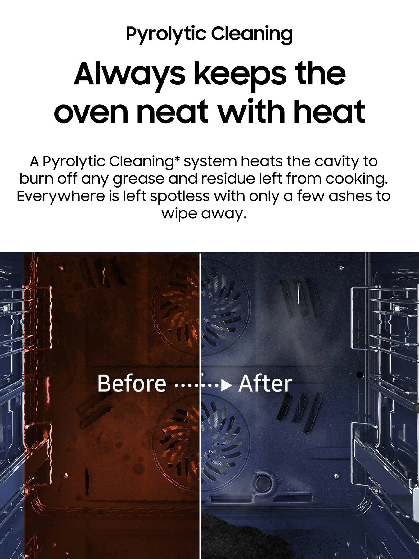 Keep the inside of your oven neat and clean without wasting time and effort scrubbing or using costly cleaning products. A Pyrolytic Cleaning system heats the cavity to burn off any grease and residue left from cooking. Everywhere is left spotless with only a few ashes to wipe away.