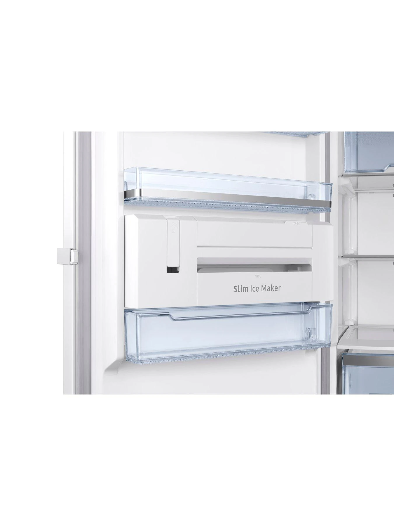 Total No Frost- Put defrosting on ice. Who has the time these days to defrost a fridge? Our Total No Frost feature maintains an even temperature, preventing ice build up, saving you the hassle of defrosting and keeping your Fridge Freezer frost free. All-Around Cooling- Play it cool.Never lose your cool with all Around Cooling. It does what itsays on the tin moving cool air around the fridge to keep a constant temperature. So everything from chickens to cucumbers will be evenly chilled and stay fresh for longer. Non plumbed Slim Ice Maker – Icely done – Why take up precious freezer space with ice when the Slim Ice Maker does the job in less space? It sits neatly inside your freezer door and drops ice into a tray below when you pull the lever. Better still, it doesn’t need to be plumbed in. Digital Inverter Compressor- A smart use of energy.The Digital Inverter Compressor cleverly alters the fridge’s power and running speed to how much cooling is needed. So the temperature is constantly perfect, making it more efficient, as well as less noisy and longer lasting. Power Freeze- Make freeze a breeze. No more worrying about your frozen favourites defrosting on the way home from the shops. Power Freeze rapidly lowers the temperature of the freezer once you’ve stocked up, quickly freezing everyone’s must have ice cream.