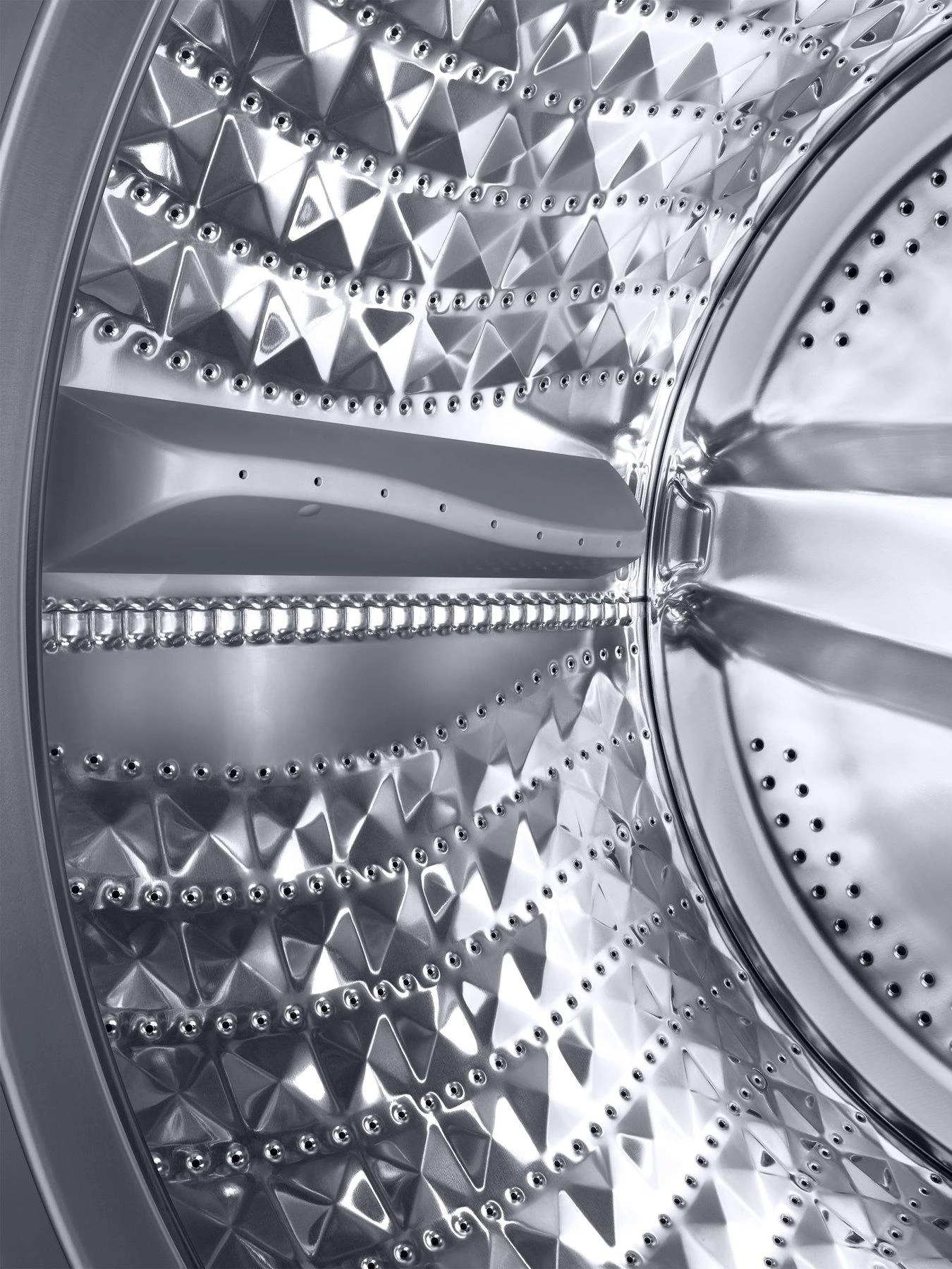 Ecobubble™ technology features a bubble generator that dissolves detergent into the water and then injects air, producing a rich soapy foam cushion that doesn’t need as much hot water to aid cleaning, while using just 30% of the energy of a standard wash. Keep all your clothes looking good while saving money on your electricity bill at the same time – hence the outstanding A rating for energy efficiency.