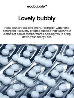 - ecobubble™ – Mixing air, water and detergent, it creates bubbles that wash your clothes at cooler temperatures, helping bring down energy bills