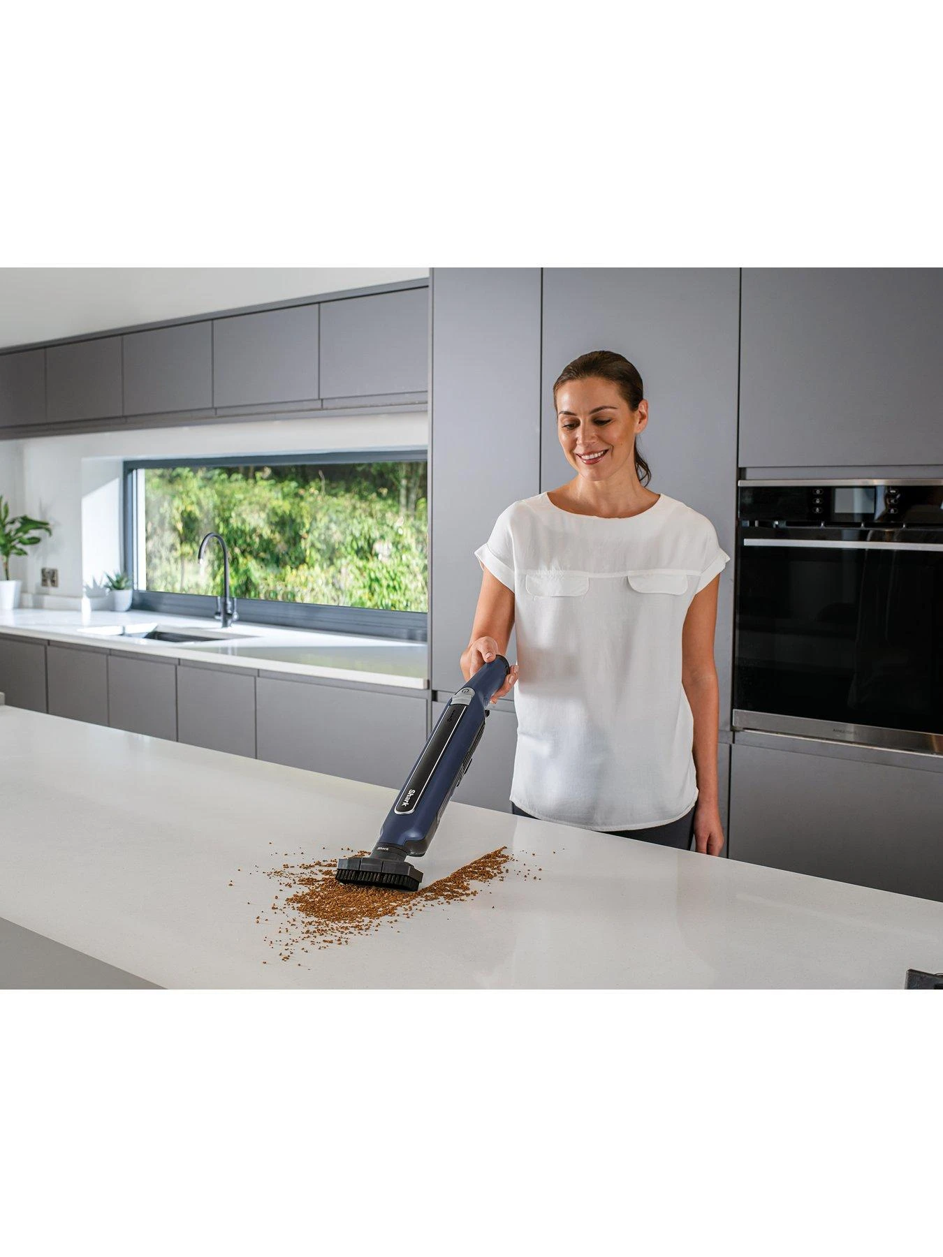 - Easily clean worktops, sofas and soft furnishings, stairs and in the car