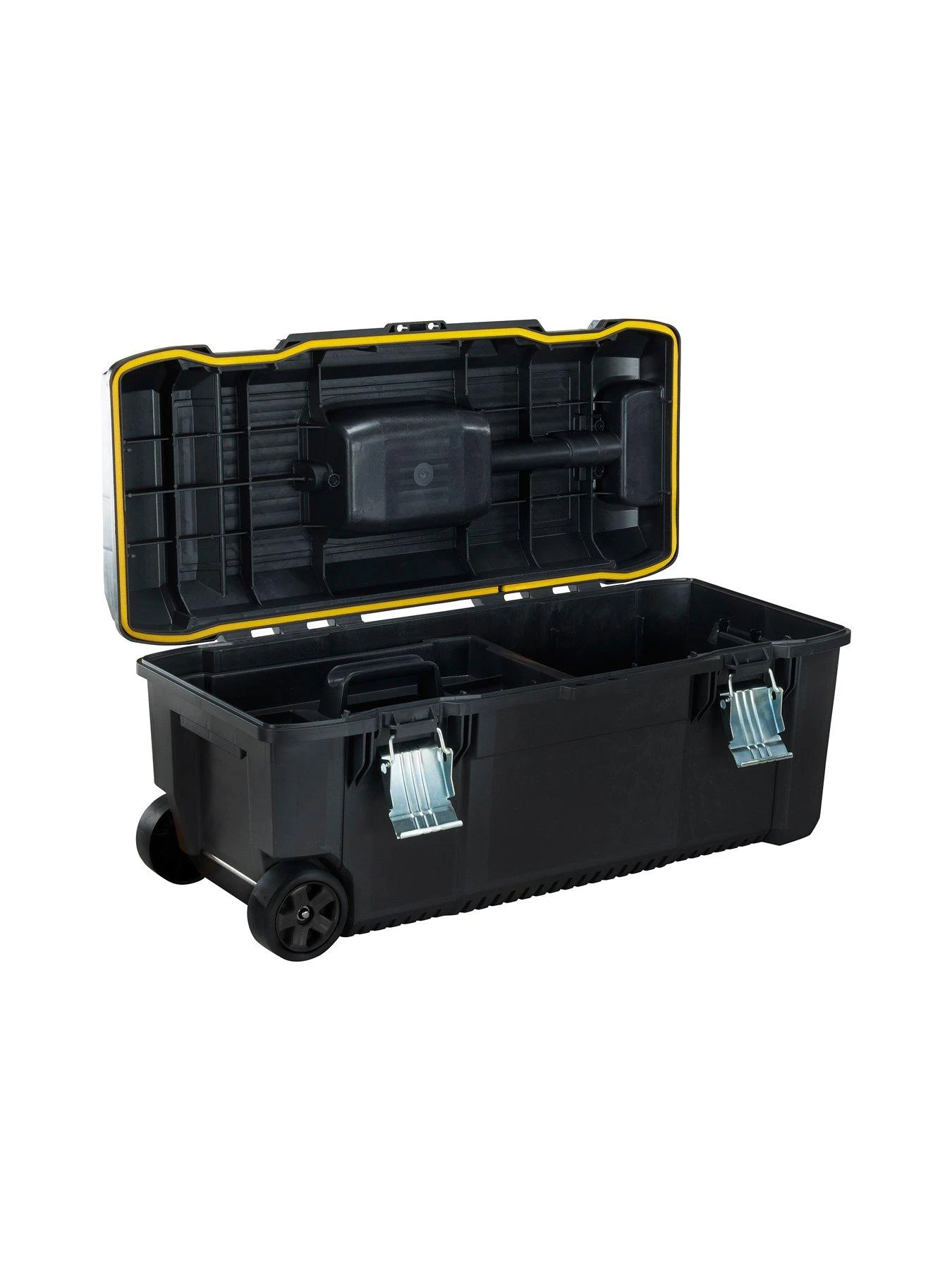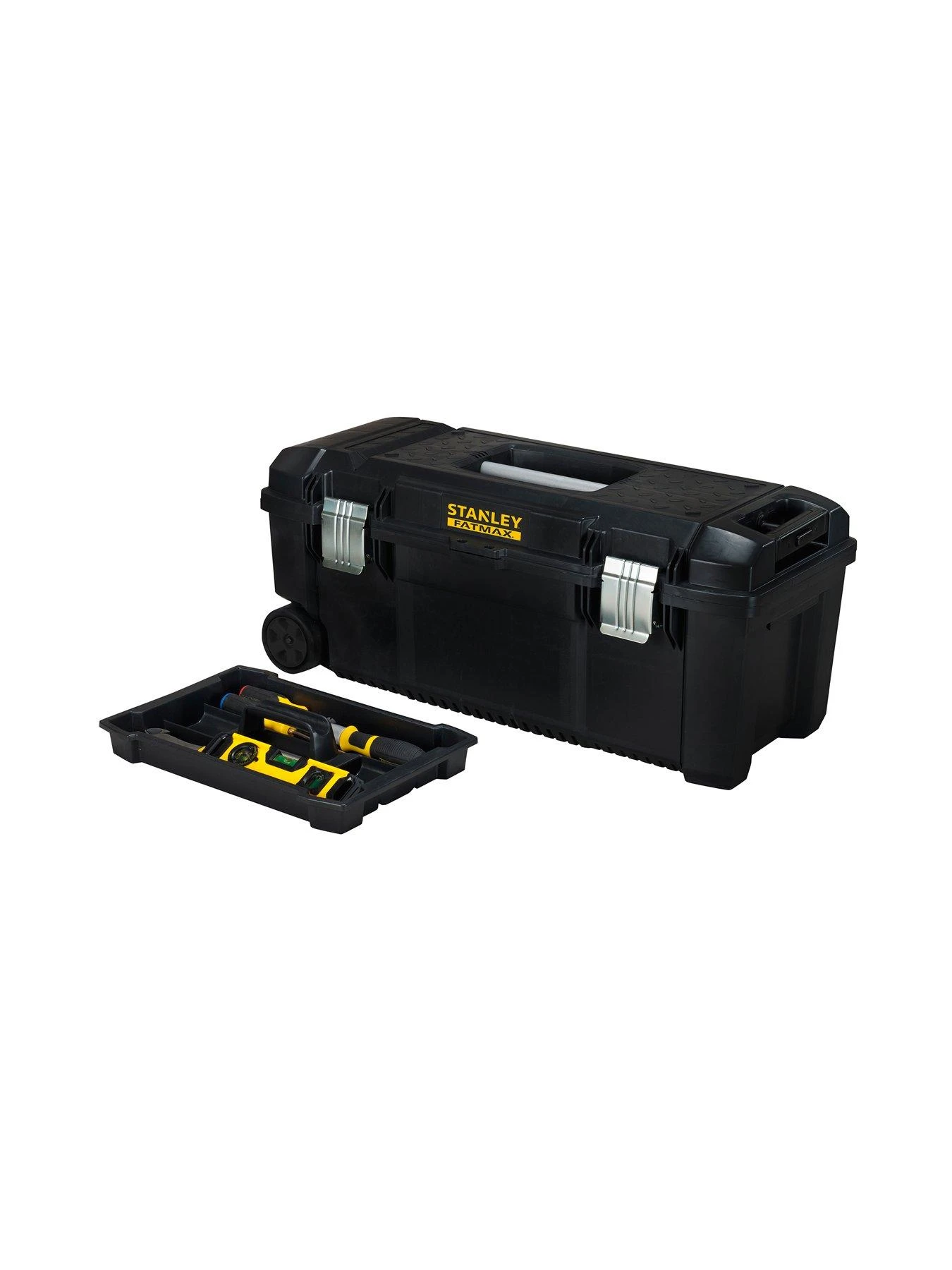 The Stanley FatMax 28 inch Toolbox with wheels and telescopic handle is a perfect mobile storage solution, being constructed from structural foam plastic for added durability and enhanced longevity.