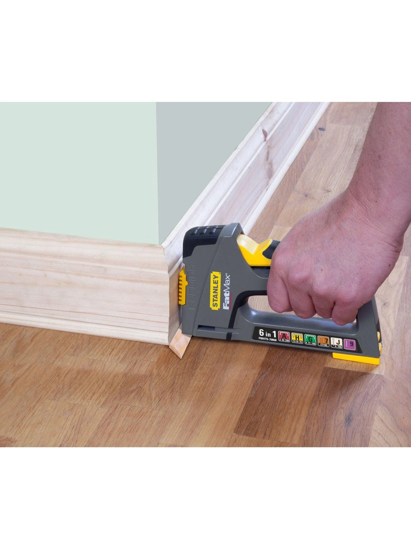 The STANLEY FATMAX TR75 6-in-1 Multi-Purpose Plastic Staple and Brad Nail Gun is a compact, multi-purpose staple and brad nail with plastic housing, compatible with 6 types of light and heavy duty staples and nails. Designed for applications such as home repairs, decorative works, fencing, trim work, beading, insulation and architrave fitting.