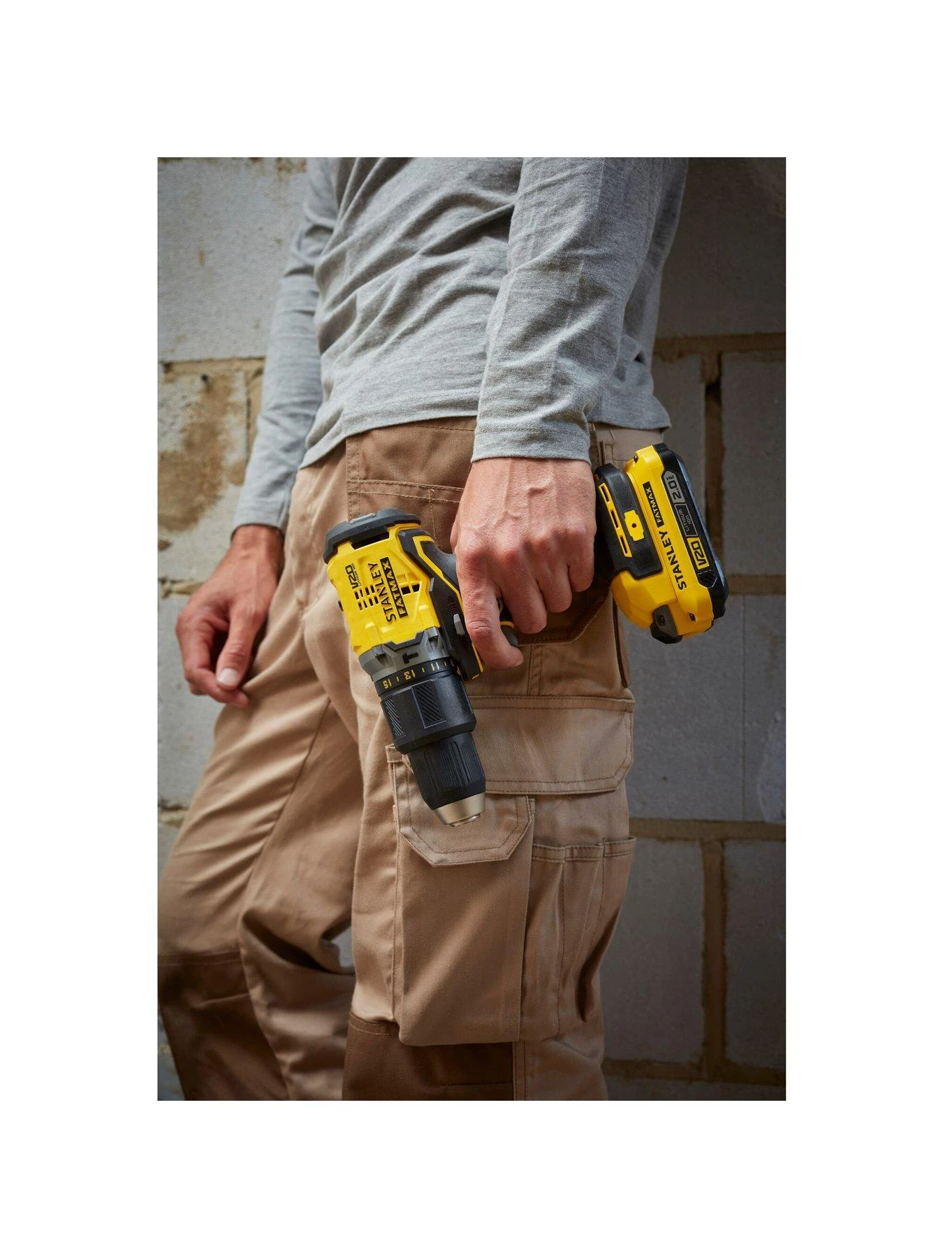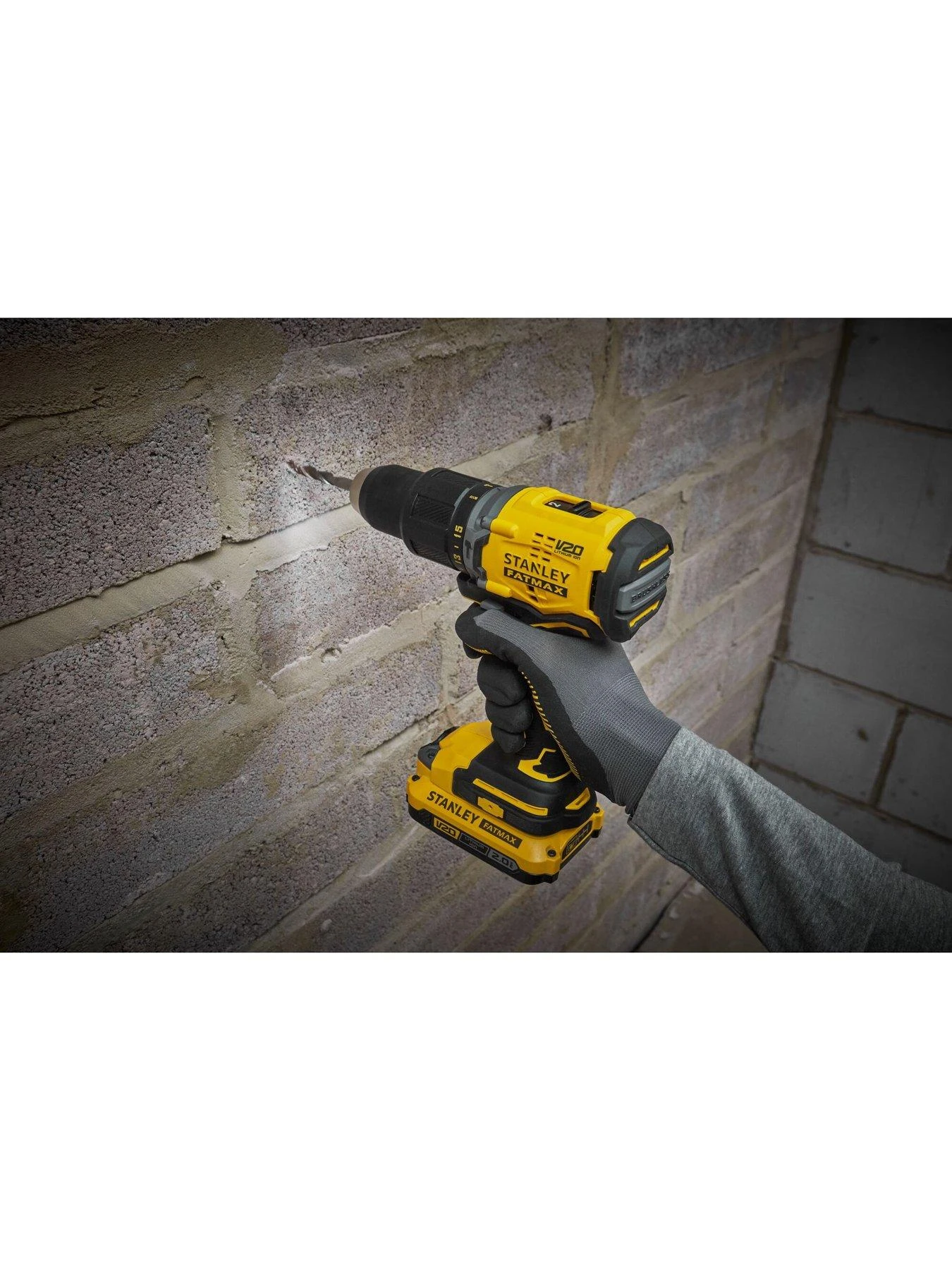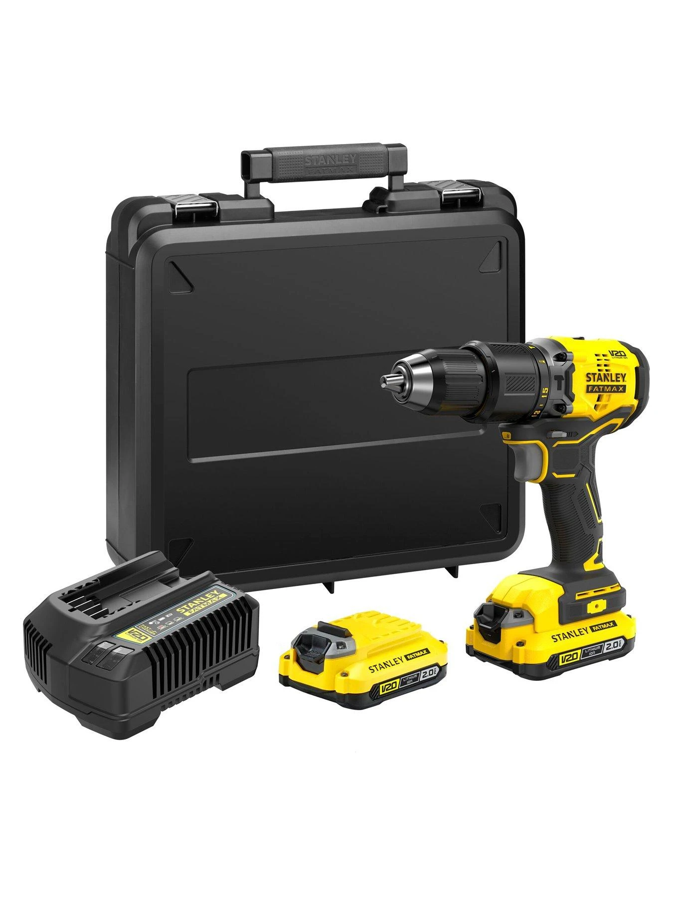 The 18V STANLEY FATMAX V20 Cordless Brushless Hammer Drill with 2 x 2.0Ah Lithium Ion Batteries and Kit Box features new and improved battery technology, with no memory effect and minimal self-discharge, coupled with brushless motor technology, for improved power efficiency and run time.