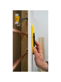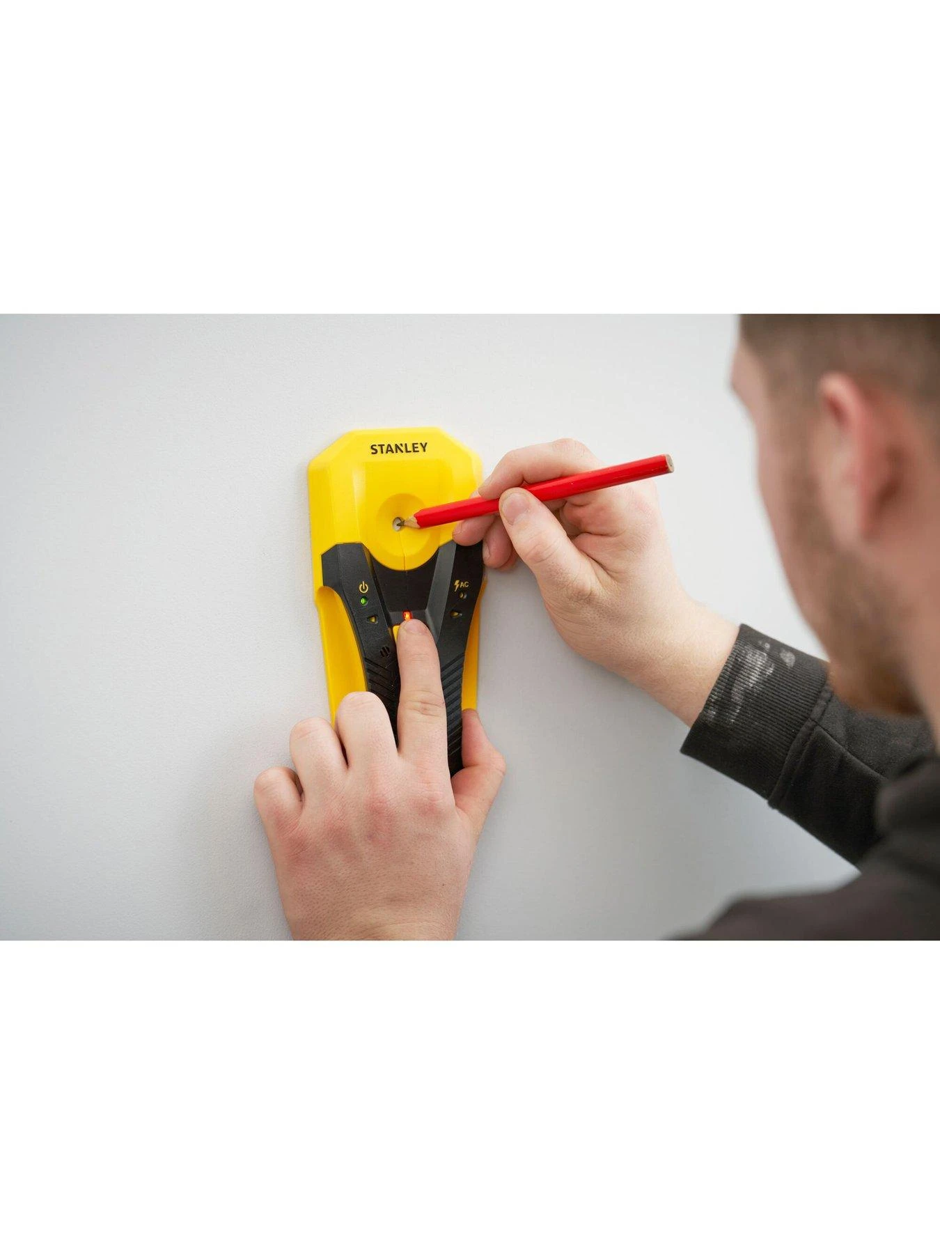 The STANLEY Stud Sensor 1-1/2″ detects wood and metal studs, as well as live wires, up to 1-1/2″ depth. It features a center marking channel for accurate stud markings, a slim profile for easy storage and portability, auto-calibration for continuously accurate readings, an audible alert for clear notification of stud location.