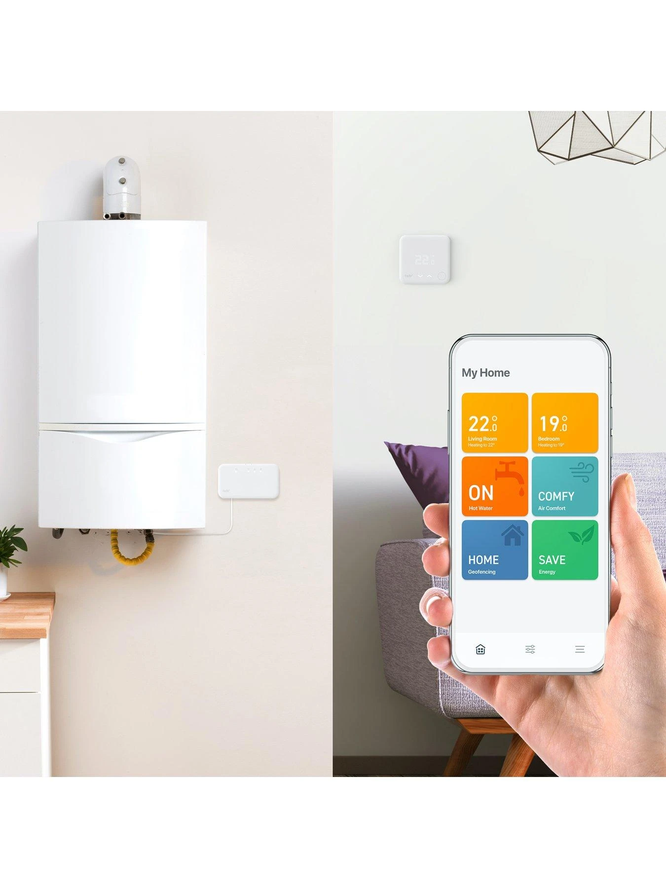 - Geofencing* – tado° uses your phone’s location to alert you to turn the heating off when the last person leaves and preheat your home back to a comfortable temperature for your return