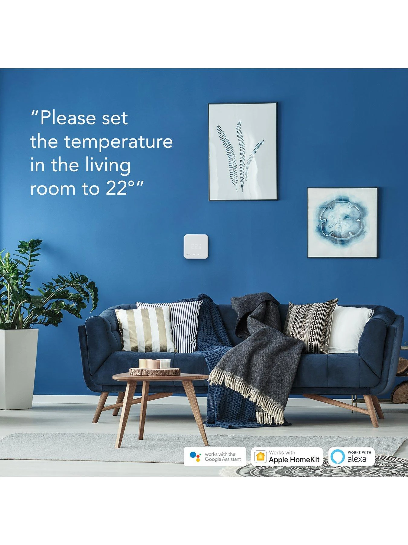 - “Set the temperature to 22 degrees” – works with Amazon Alexa / Apple HomeKit / Google Assistant