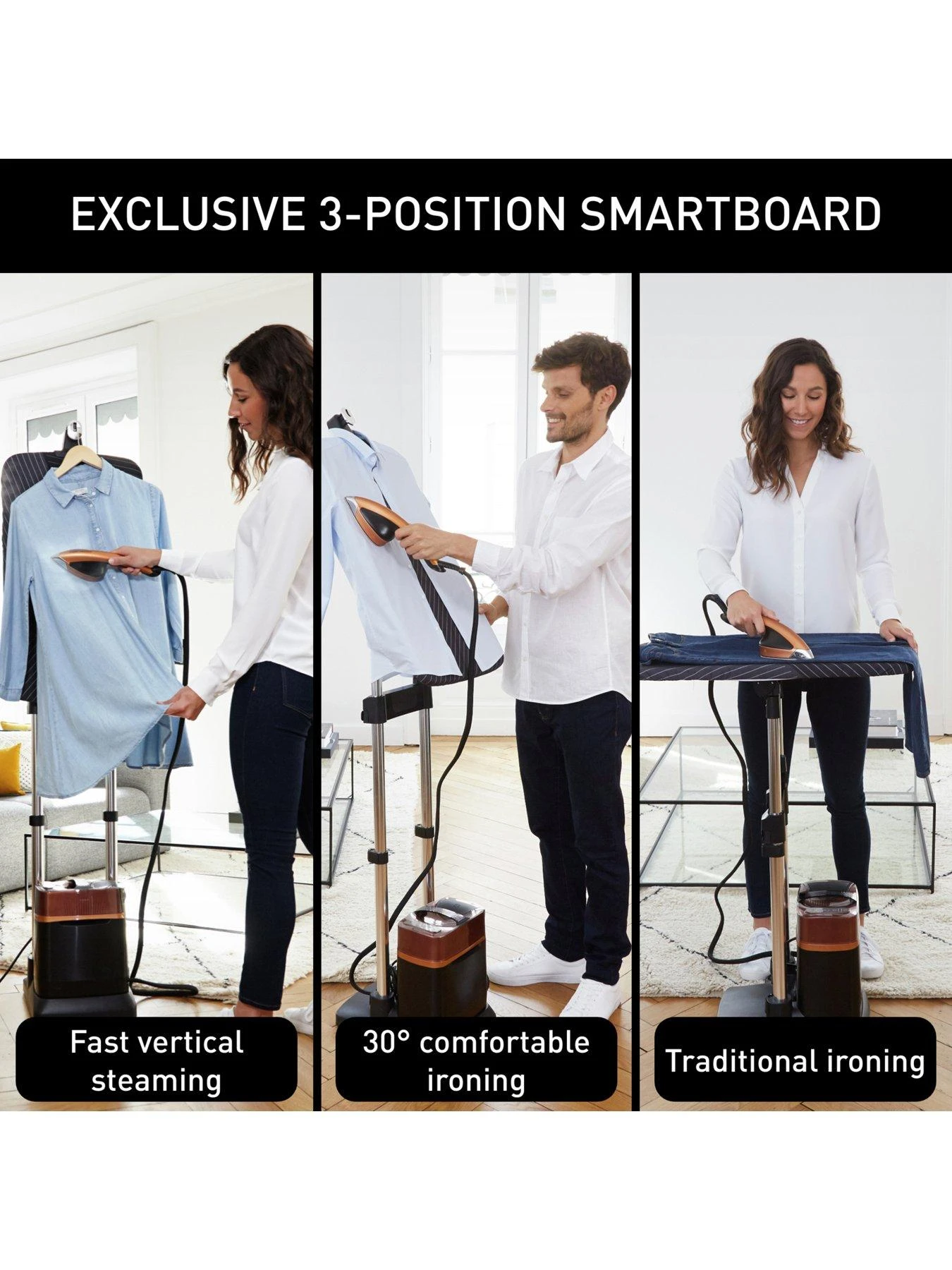 The patented, three-position Smart Board lets you iron horizontally, steam vertically, tilt it to a comfortable 30° and even adjust the height to suit you. With a heat-up time of around 70 seconds, IXEO Power is always ready to go and, at 2170W, it’s as powerful as a steam generator iron*.