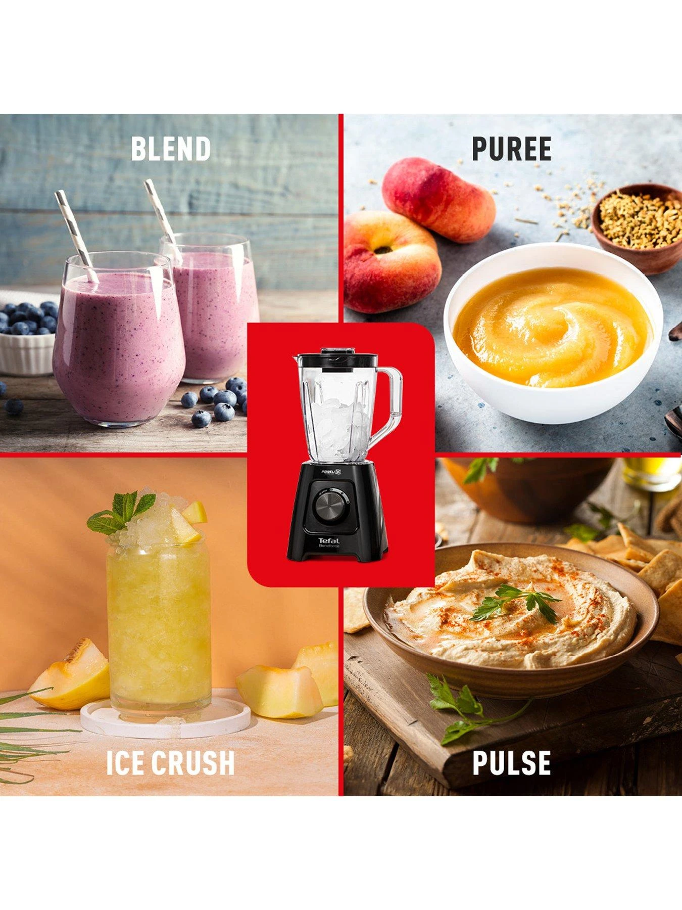 The Tefal BL420840 Blendforce II Blender blends, purees and even crushes ice in an instant.